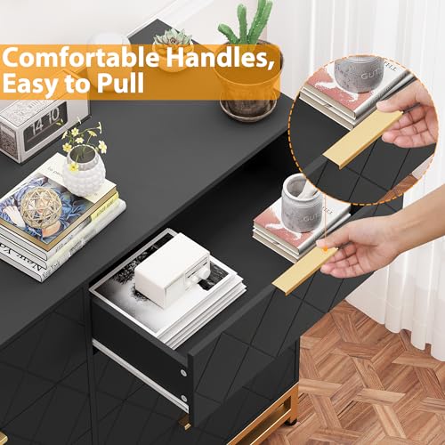 The sleek black finish and modern metal handles create a sophisticated look that complements any décor style.