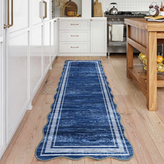 Wow, this area rug is wonderful. It is non slip and perfect for my kitchen. I wanted something that was a little fancy so the scalloped edges added that touch. The color is perfect and it flattened out with no wrinkles. Perfect thickness and super functional.