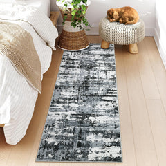 Garvee Modern Abstract Runner Rug 2 x 6 Washable Rug for Hallway, Non Slip Kitchen Rug, Low Pile Soft Entryway Carpet, Indoor Foldable Printed Rug for Kitchen Bedroom Laundry Room, Black Grey
