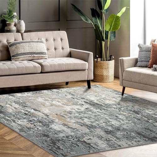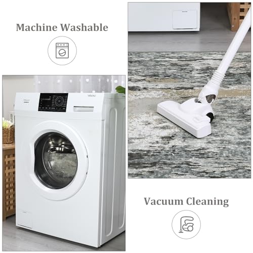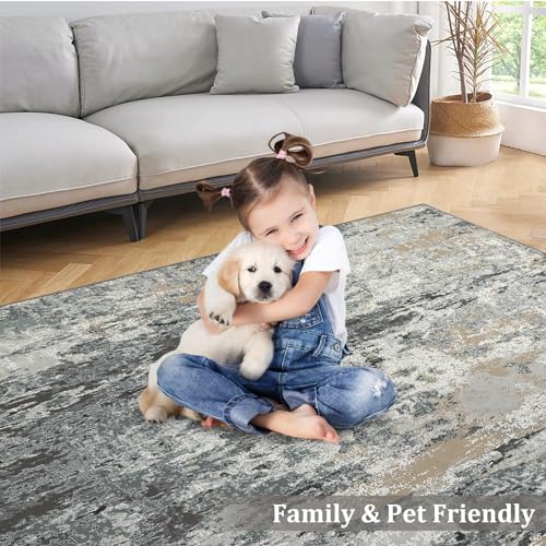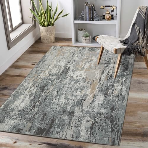 Garvee Modern Abstract Washable Rug 5x7 - Distressed Low Pile, Non-Slip Floor Cover for Living Room, Bedroom, Office - Polyester, Easy Care, High Traffic, Cozy, Timeless Design