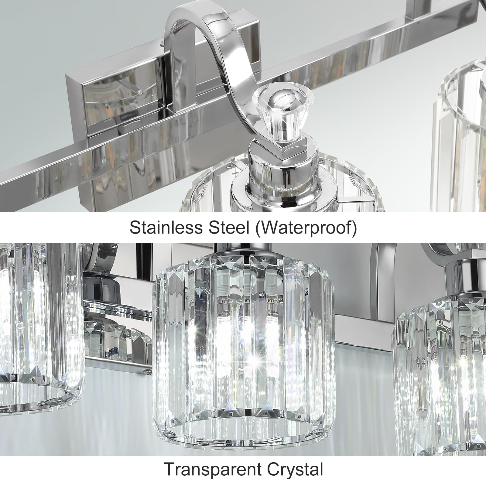 Garvee Modern Bathroom Vanity Light 4-Lights Stainless Steel Crystal Vanity Lights Over Mirror Modern Crystal Bathroom Wall Lighting Fixtures