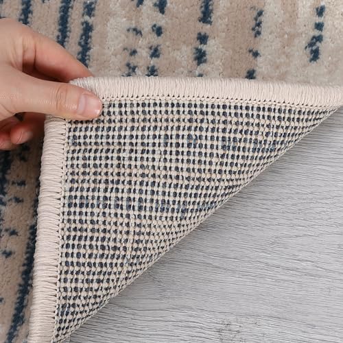 Garvee Modern Blue Geometric Area Rug 9x12 - Low Pile, Non-Slip - Durable Polypropylene, Jute Backing - Living Room, Bedroom, Dining Room