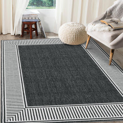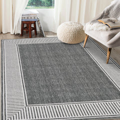 Garvee Bordered Grey 10x13 Modern Area Rug Washable Large Living Room Rug with Rubber Backing Throw Carpet for Bedroom Dining Room