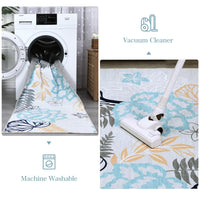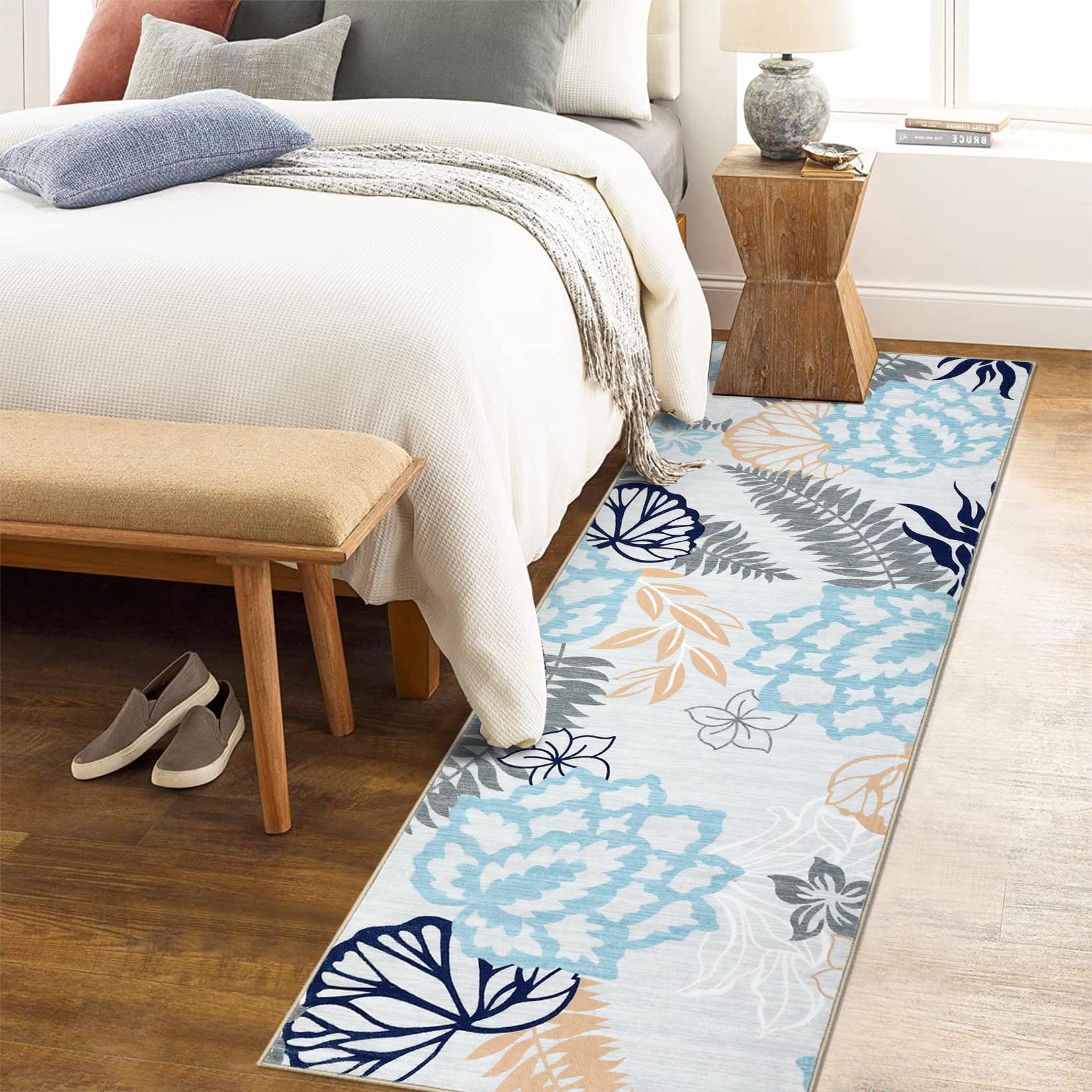 Garvee Modern Floral Runner Rug 2x8 - Washable, Non-Slip, High-Quality Polyester, Soft & Durable, Low Pile, Pet & Child Friendly, Blue/Light Grey - Ideal for Bedroom & Living Room