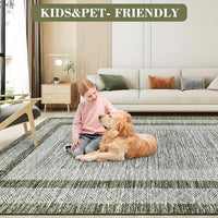 Garvee Bordered Green 5x7 Modern Area Rug Distressed Washable Non-Slip Thin Carpet, Soft Low-Pile Contemporary Green Rug for Living/Dining Room