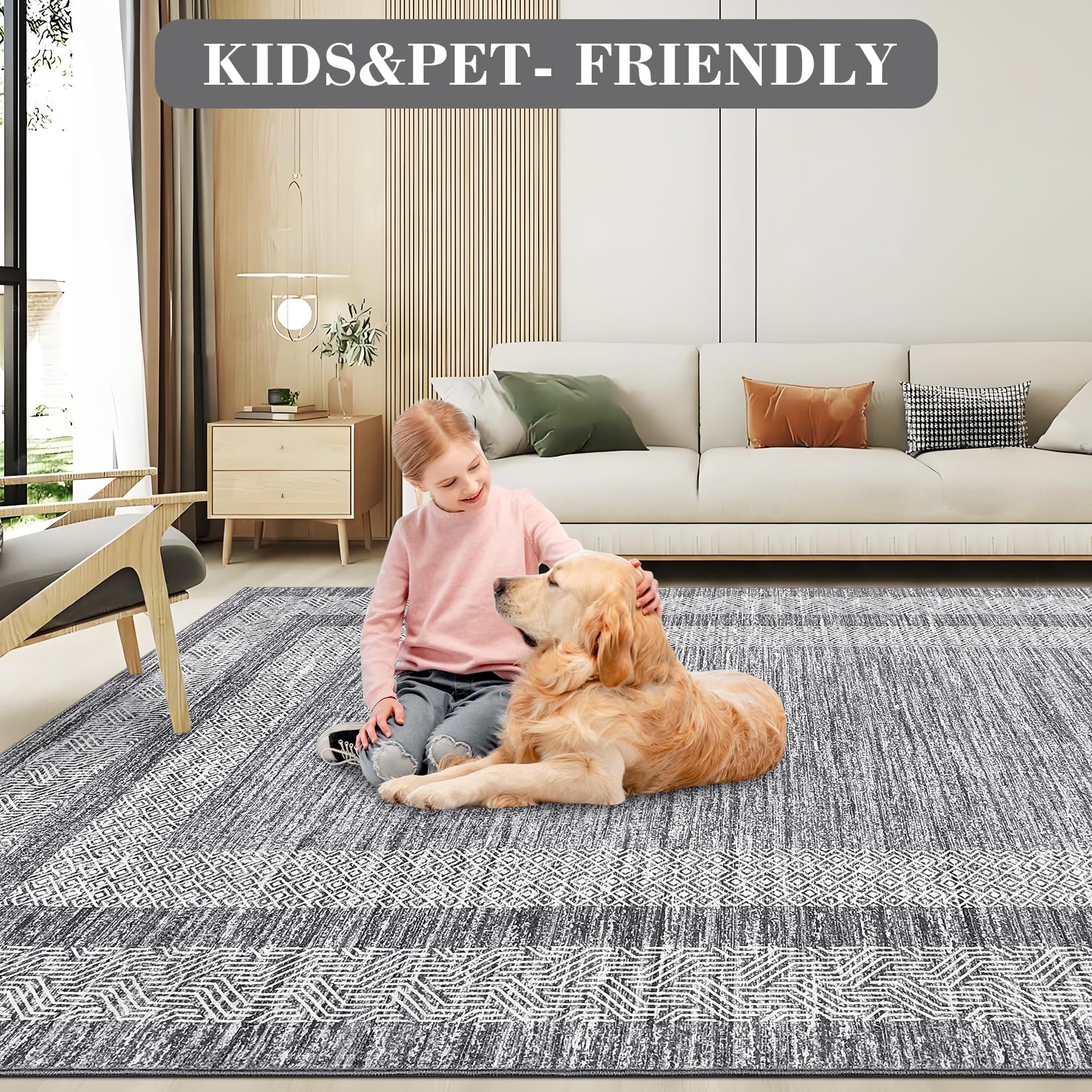 - Secure Non-Slip Design: Safety is assured with the non-slip TPR backing, keeping this non-shedding rug securely in place on various floor types. Trust this soft carpet to remain anchored, reducing the risk of slips and falls—ideal for families and pets