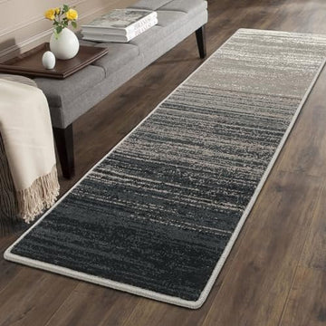 This ombre rug is very durable and stain resistant. Suitable for busy areas such as the living room, bedroom, kitchen, bathroom, and office.