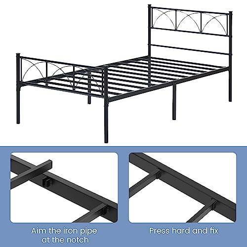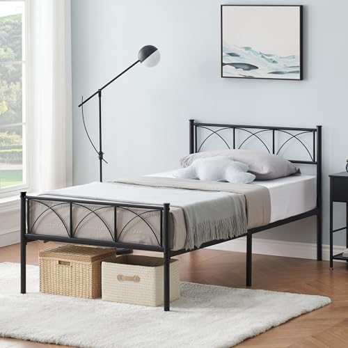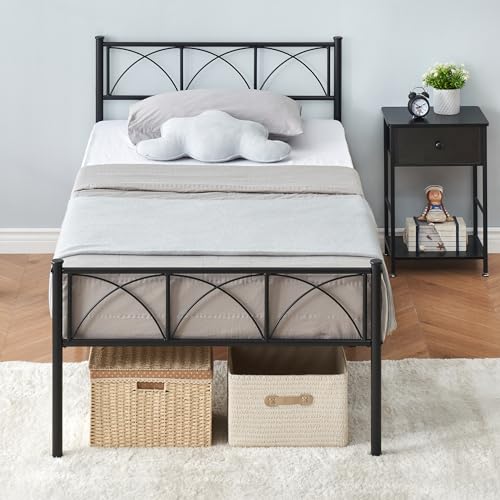 Garvee Modern Iron Bed Frame with Headboard & Footboard, Firm Metal Support, Under Bed Storage, Easy Assembly, Black, Twin