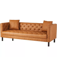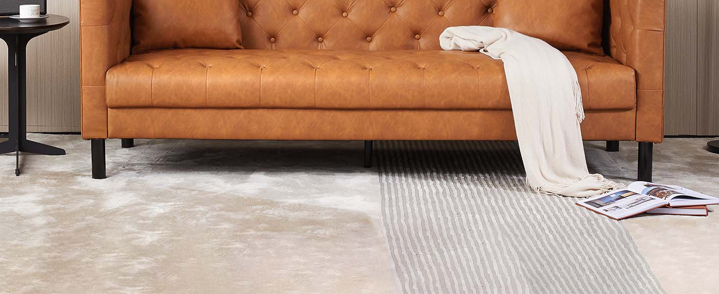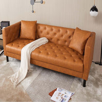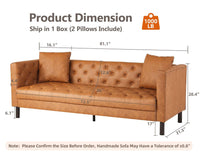 Garvee Modern Leather Couch for Living Room, 81" Chesterfield Sofa with Deep Seats and 2 Pillows, 3 Seater Sofa with Button Tufted, Sleeper Sofa for Apartment, Office, Brown