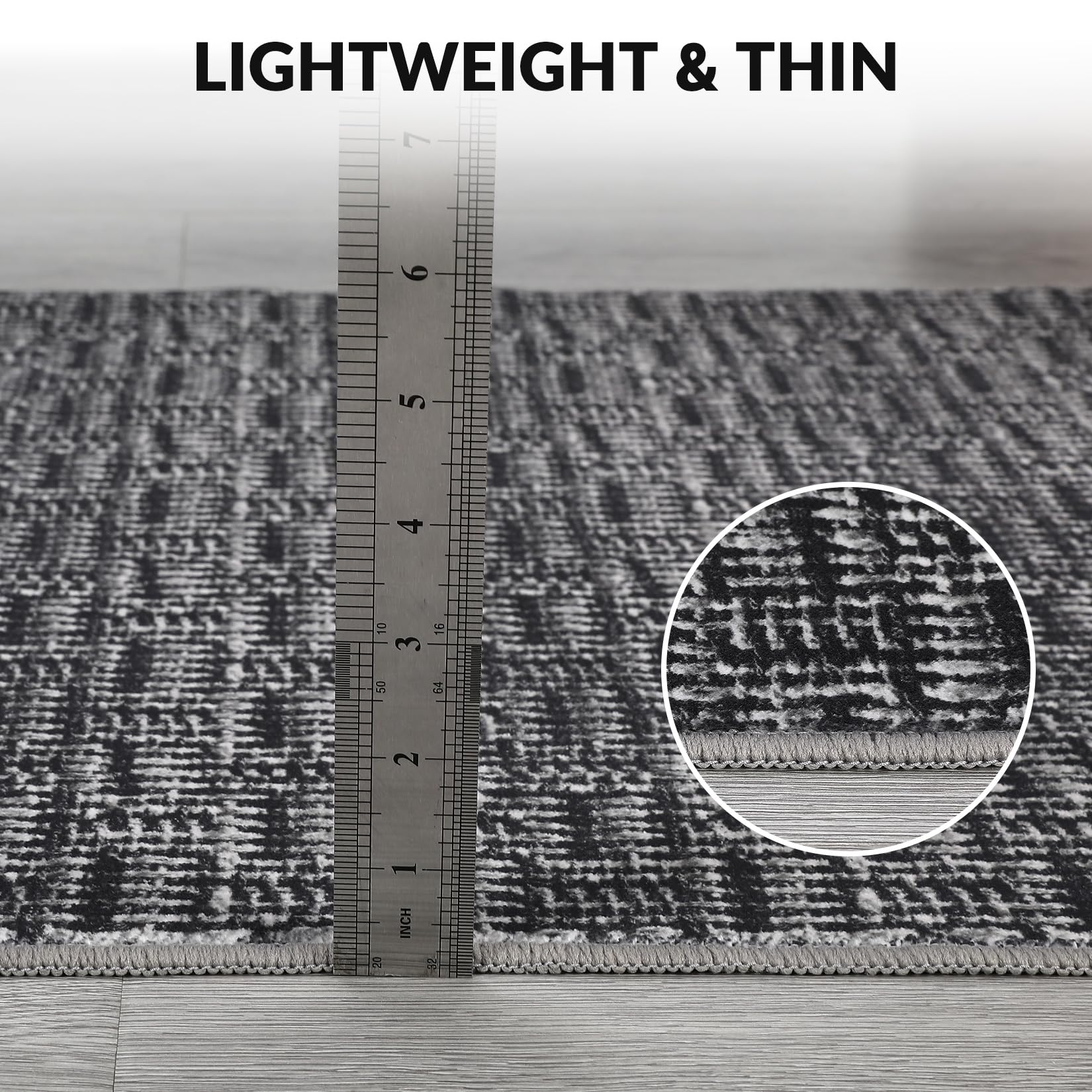 Garvee Modern Rug 9x12 Large Washable Rug Solid Woven Printed Rug Soft Indoor Living Room Rug Contemporary Non Slip Non-Shedding Carpet Low Pile Foldable Throw Rugs for Bedroom Dorm Home Office Black