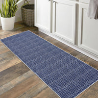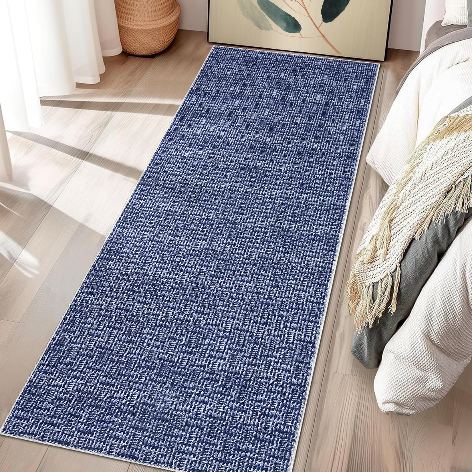 Garvee Modern Runner Rug 2x6 Washable Rug Runner Solid Woven Print Hallway Runners Indoor Soft Entryway Rug Non Slip Non-Shedding Low Pile Foldable Kitchen Rug Runner for Laundry Bedside Blue