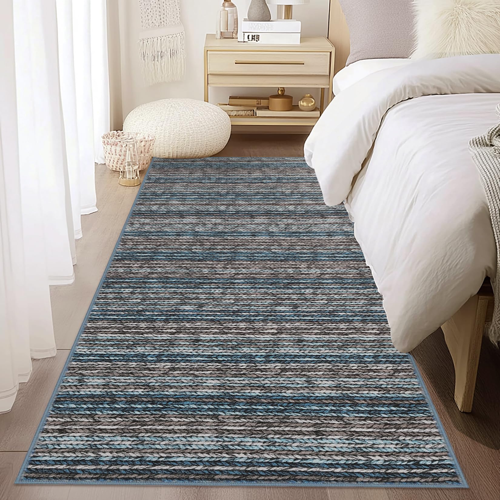 Garvee Modern Runners for Hallways 2x6 Washable Hall Carpet Runner Printed Braid Kitchen Rug Non-Slip Entryway Runner Rugs Striped Floor Runners for Indoor Hallway Bedroom Kitchen, Blue