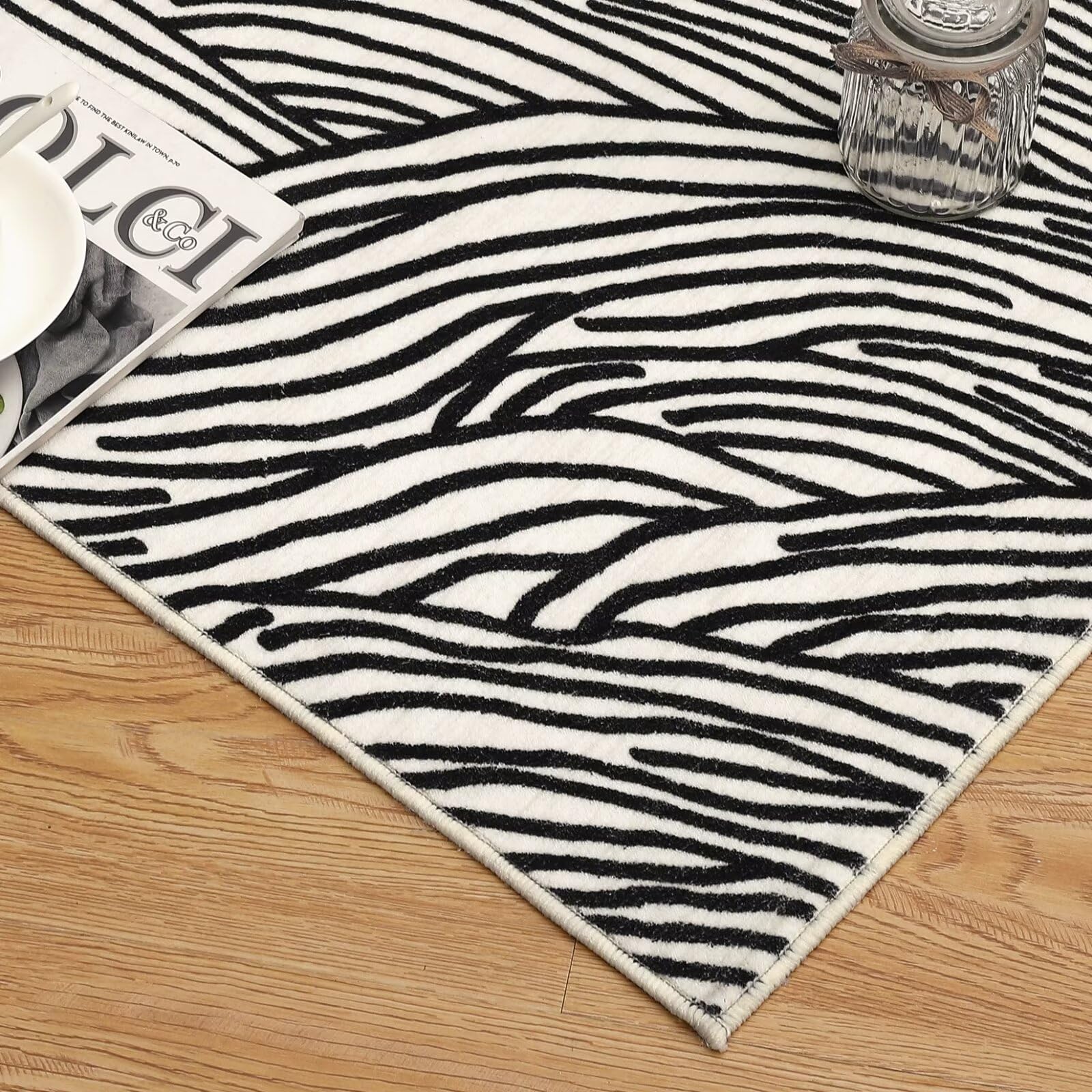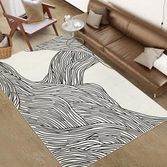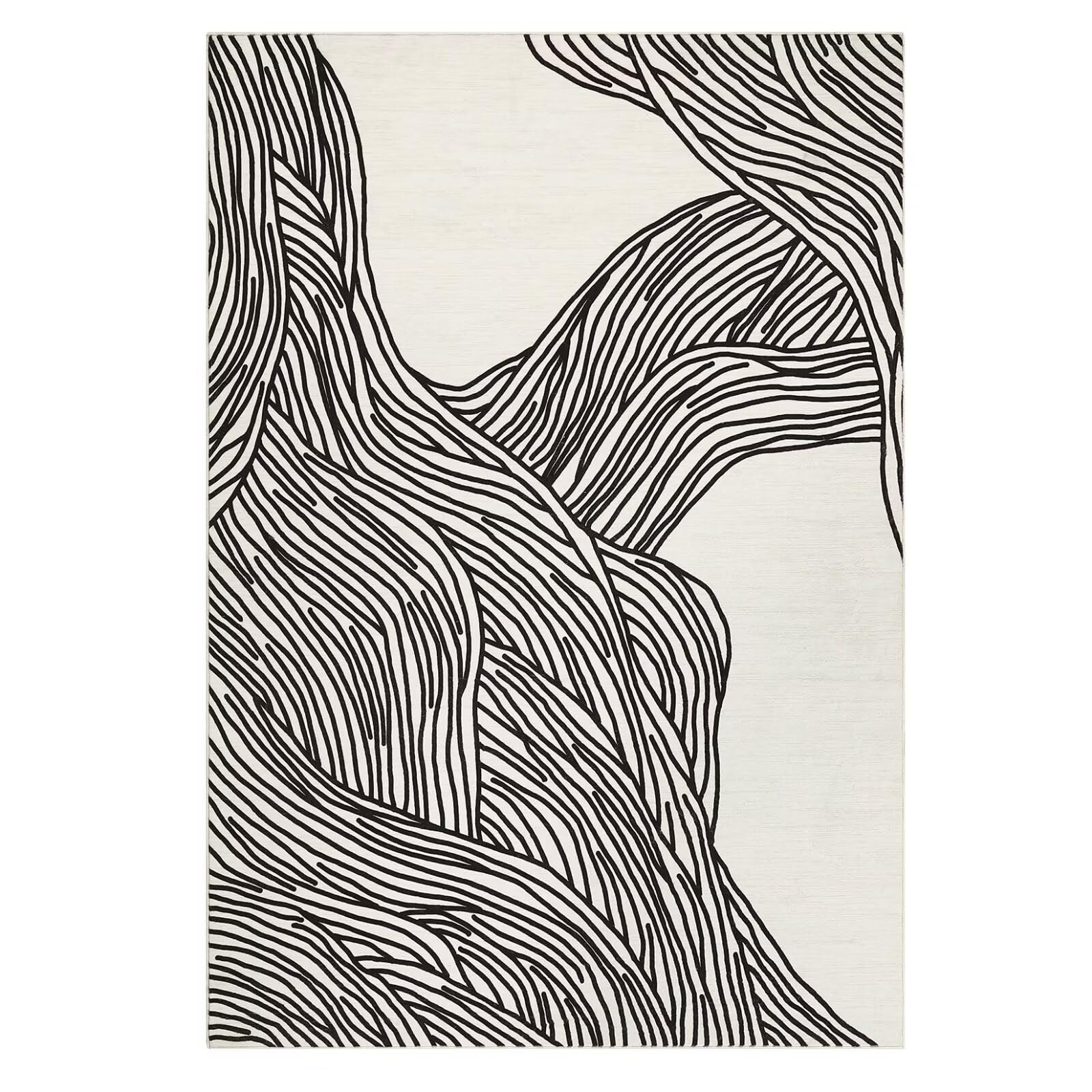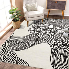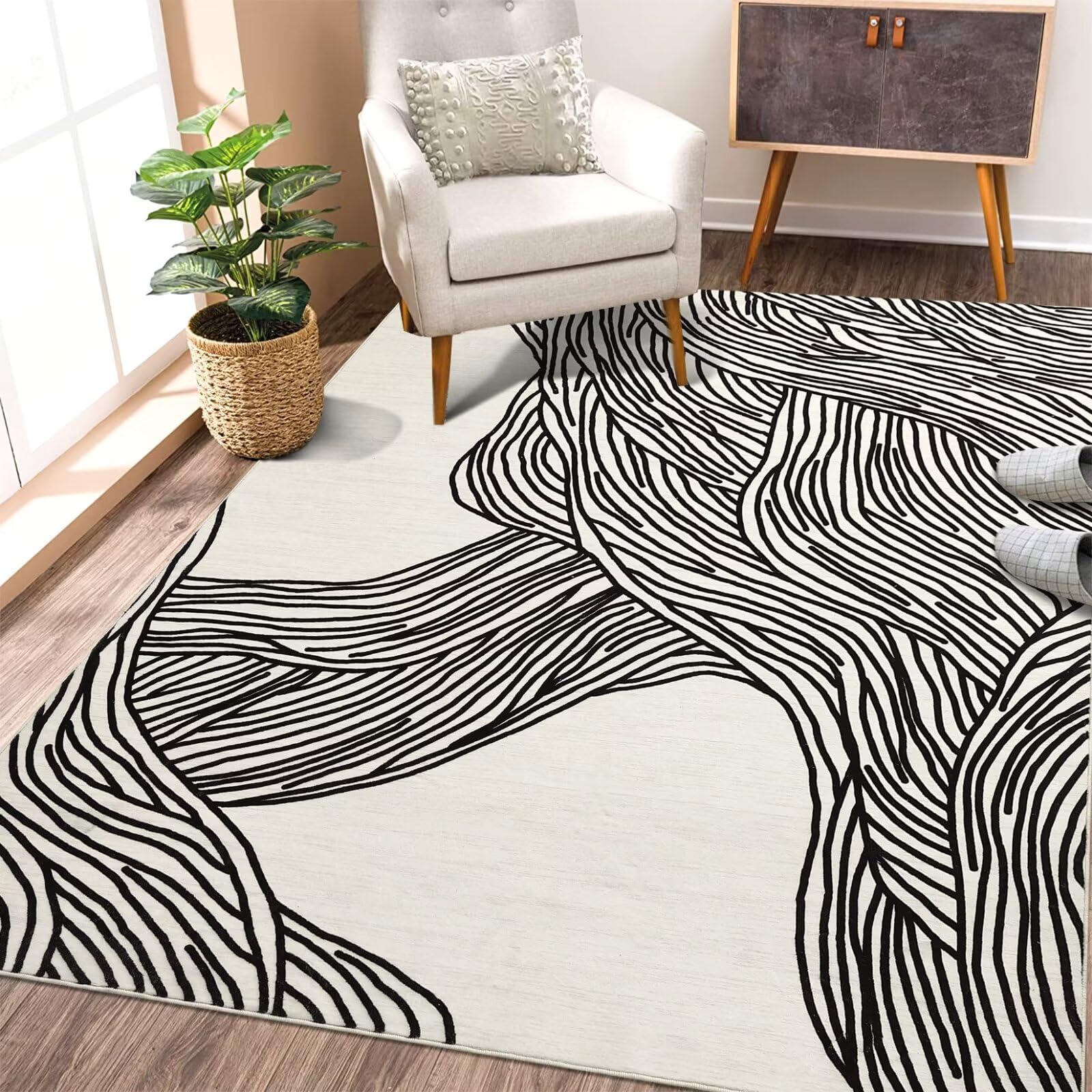 Garvee Modern Black & White 5x7 Striped Area Rug, Curve Design Low Pile Carpet for Living Room Bedroom Office