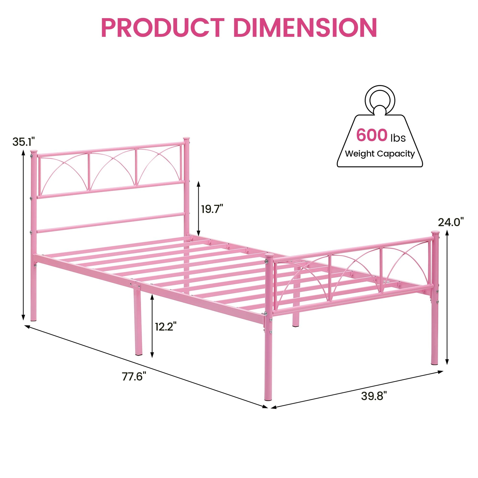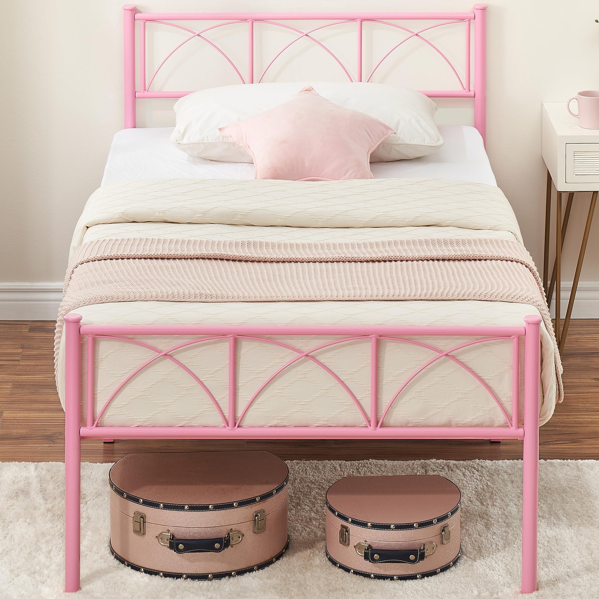 Garvee Modern Stylish Iron Bed Frame with Headboard & Footboard, Firm Support, Metal Platform, No Box Spring Needed, Under Bed Storage, Easy Assembly, Pink Twin