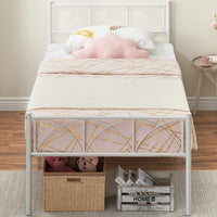 Garvee 14 Inch Metal Bed Frame with Headboard & Footboard, Heavy Duty Steel, Underbed Storage, No Box Spring Needed, Easy Assembly, White, Twin