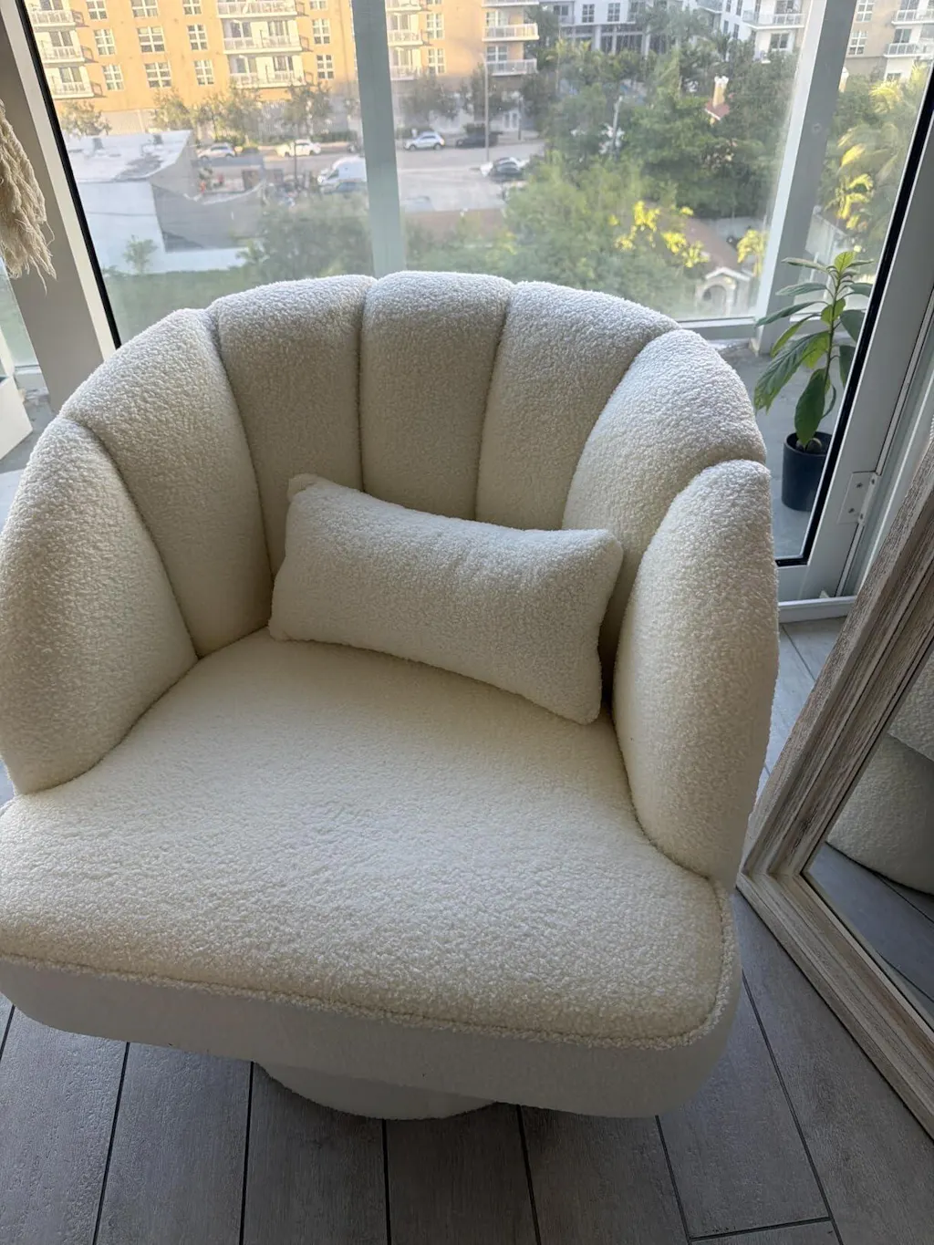 Garvee Swivel Barrel Accent Chair - Teddy Velvet Upholstered 360° Rotating Modern Armchair with Striped Backrest & Plush Padding, Round Lounge Chair for Living Room, Bedroom, Beige