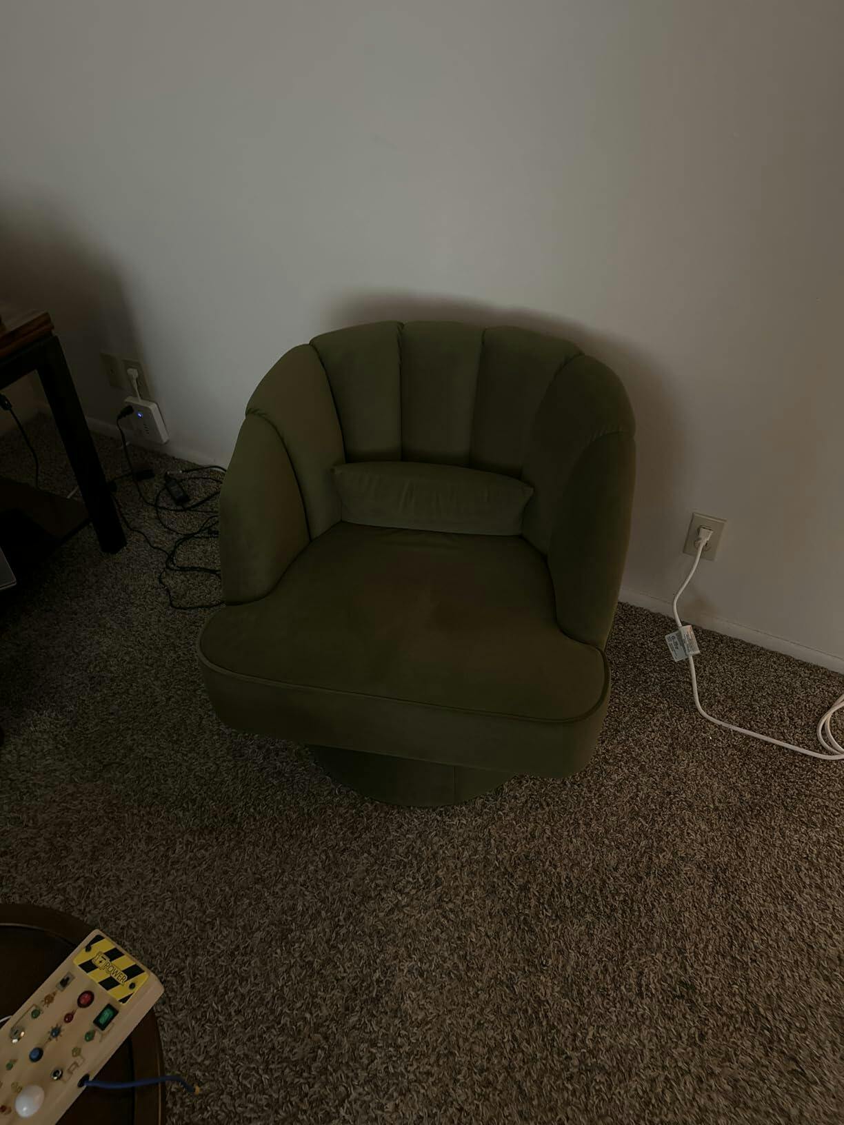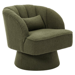 Garvee Swivel Barrel Chair - Velvet Upholstered Modern Armchair with Striped Backrest & Plush Padding, Round Lounge Chair for Living Room, Bedroom, Small Spaces, Green