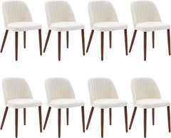 Garvee Set of 6 Mid-Century Modern Fabric Upholstered Dining Chairs with Padded and Solid Wood Legs, Beige