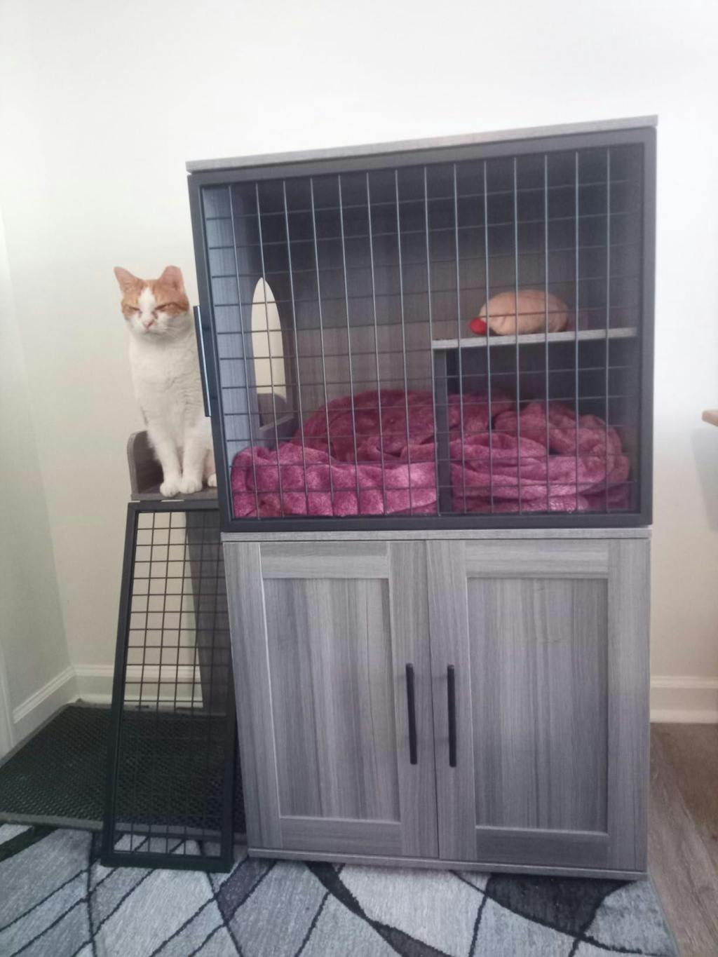 With its double-layer design, integrated ladder, and ventilation holes, this cat litter box enclosure combines practicality with comfort. The sturdy construction ensures stability, making it safe for your cat and a stylish addition to your home.