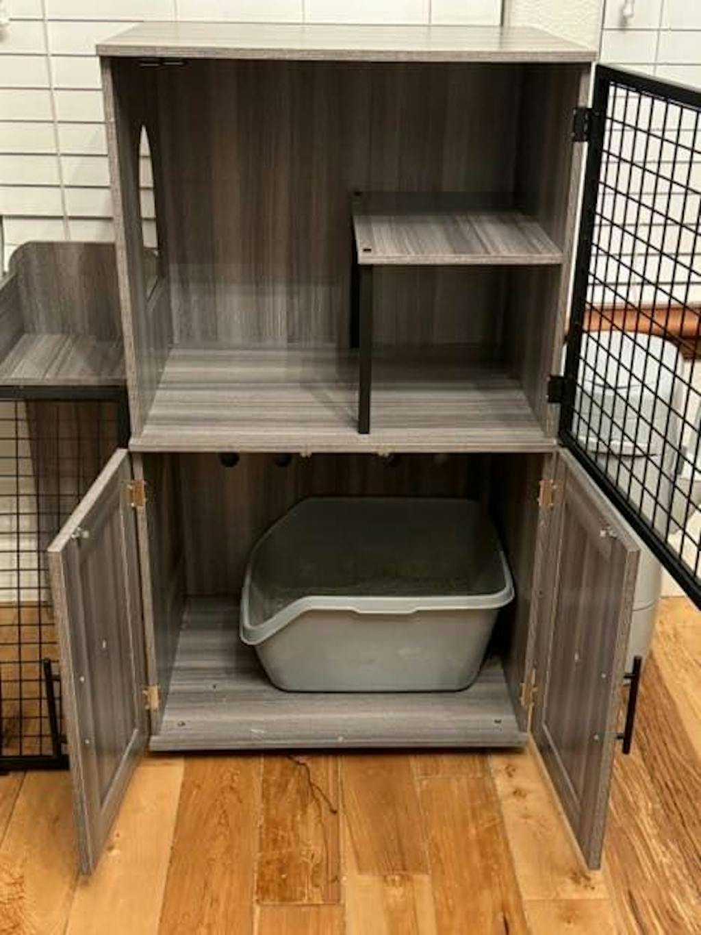A hidden litter box that blends seamlessly with your home decor, providing privacy for your cat and style for your home.