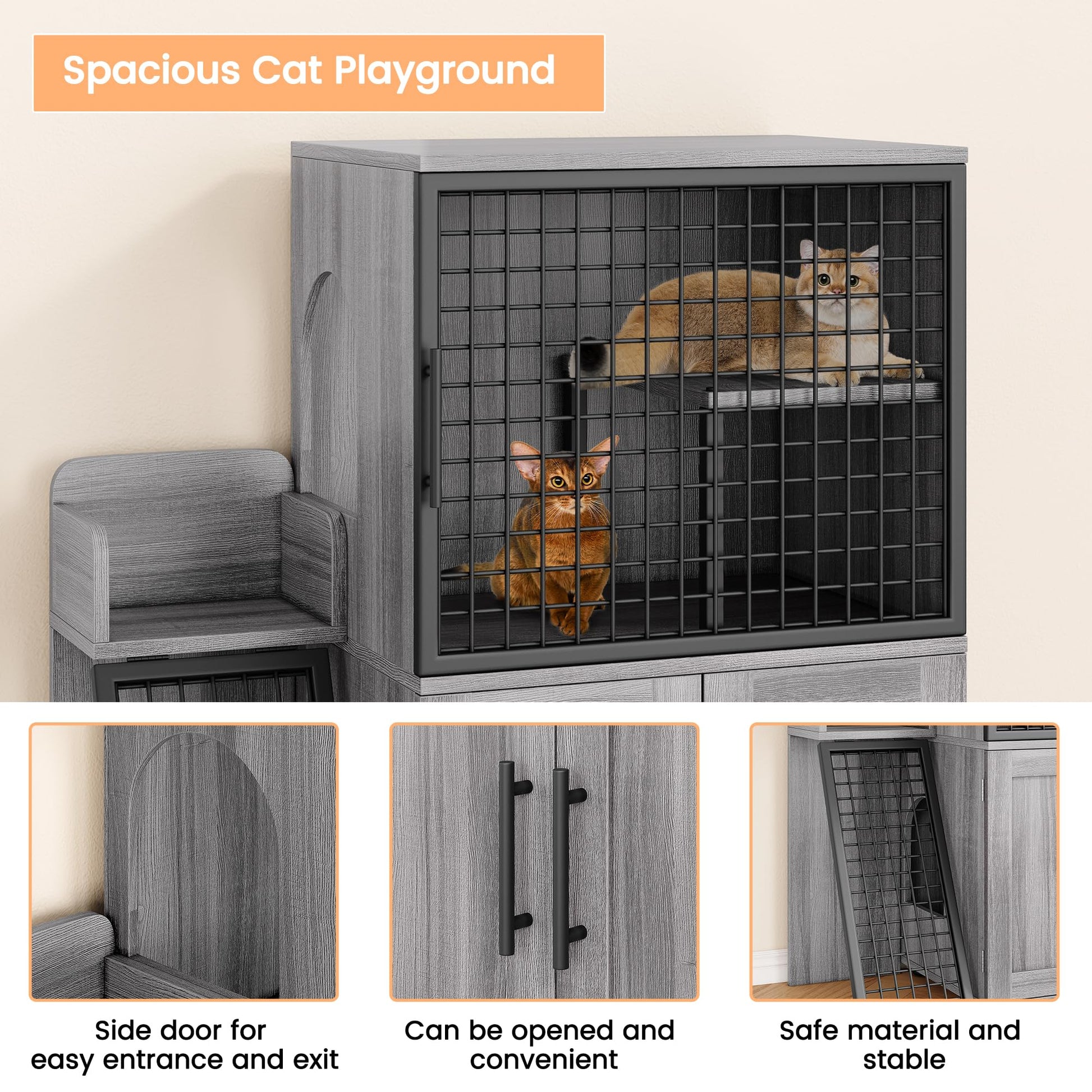 Garvee Modern Villa Cat Litter Box Enclosure + Hidden Furniture + Double Layer + MDF & Iron + Ladder & Ventilation + Indoor Use