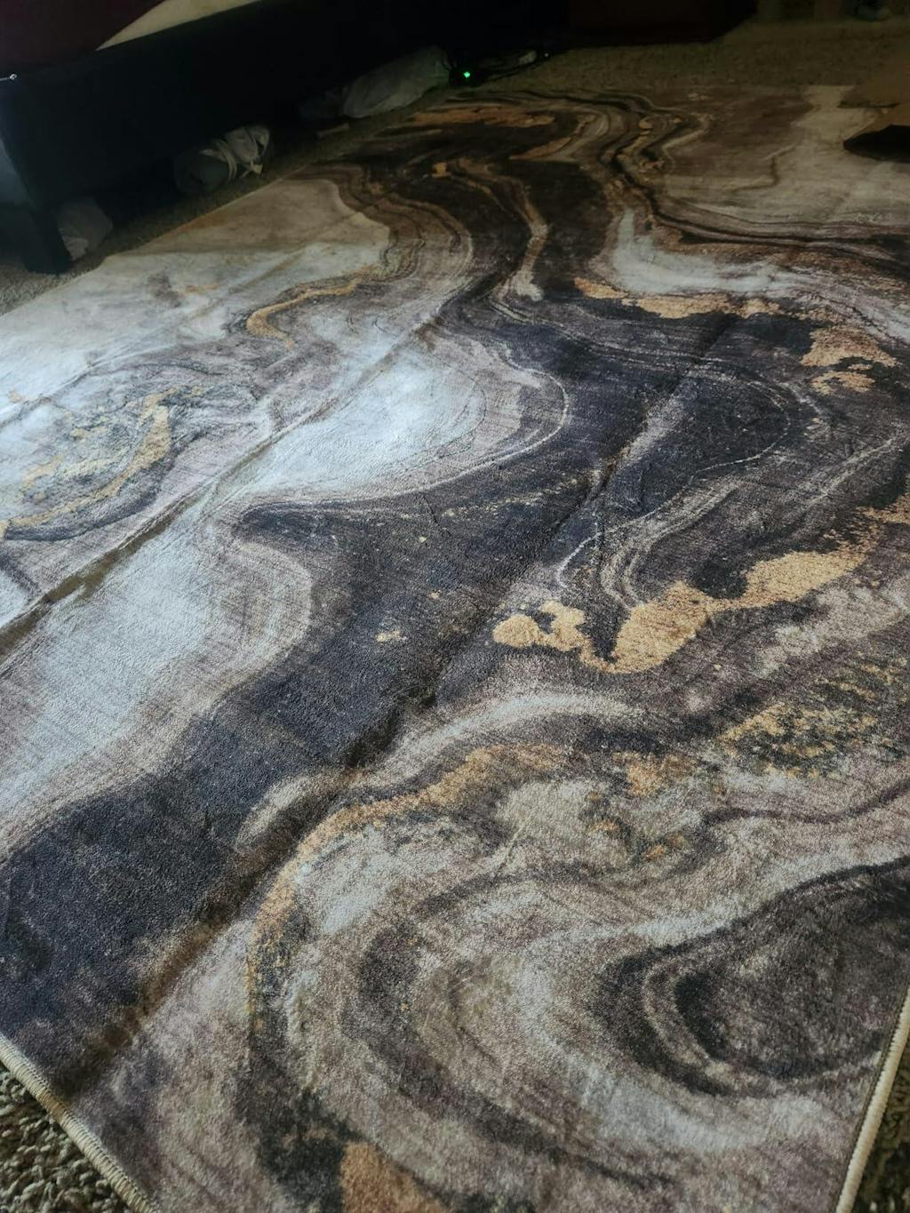 This rug is super cool. It’s got the coolest pattern mimicking marble. And it does the job. Looks so authentic. It’s soft but a thinner rug. No issues with construction of the rug bits made well and the rug laid down very quickly. Stays in place without shifting. Looking forward to being able to wash this rug when the time comes. I think it’s an excellent deal for the money and it’s definitely going to be a talking point in the room.