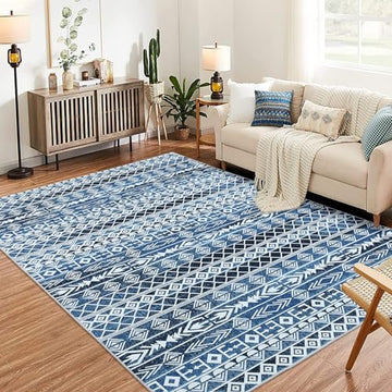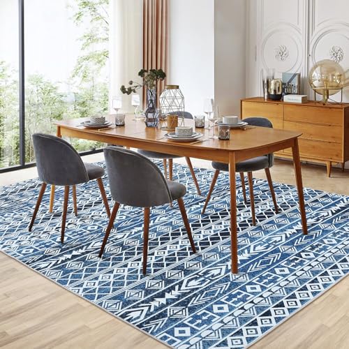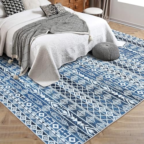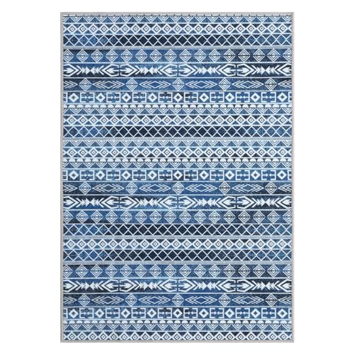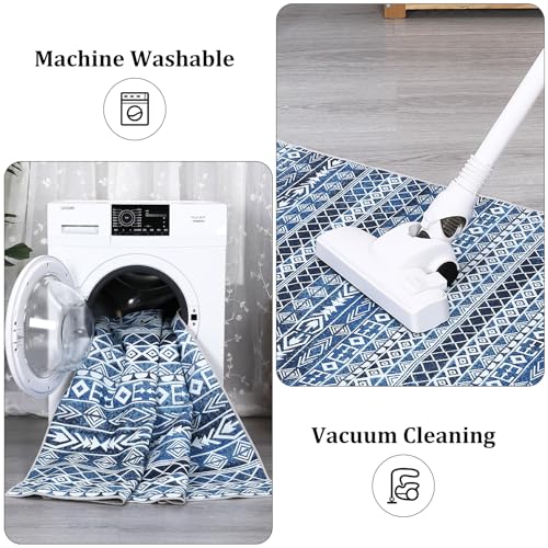 Garvee Geometric Area Rug 3x5 - Machine Washable, Easy-Cleaning, Non-Shedding, Stain Resistant, Non-Slip, Foldable Indoor Mat for Living Room, Bedroom, Kitchen, Entryway, Bathroom, Blue
