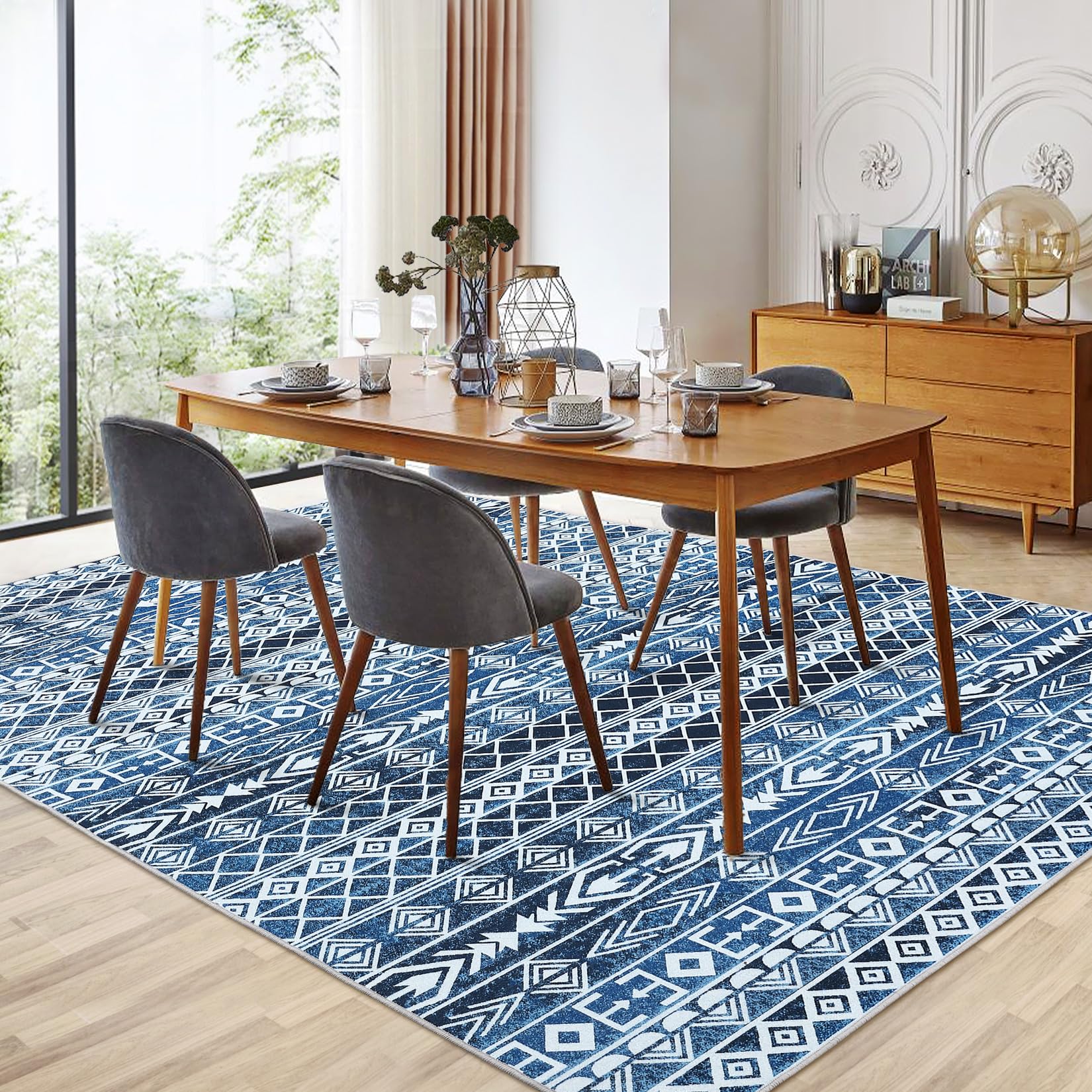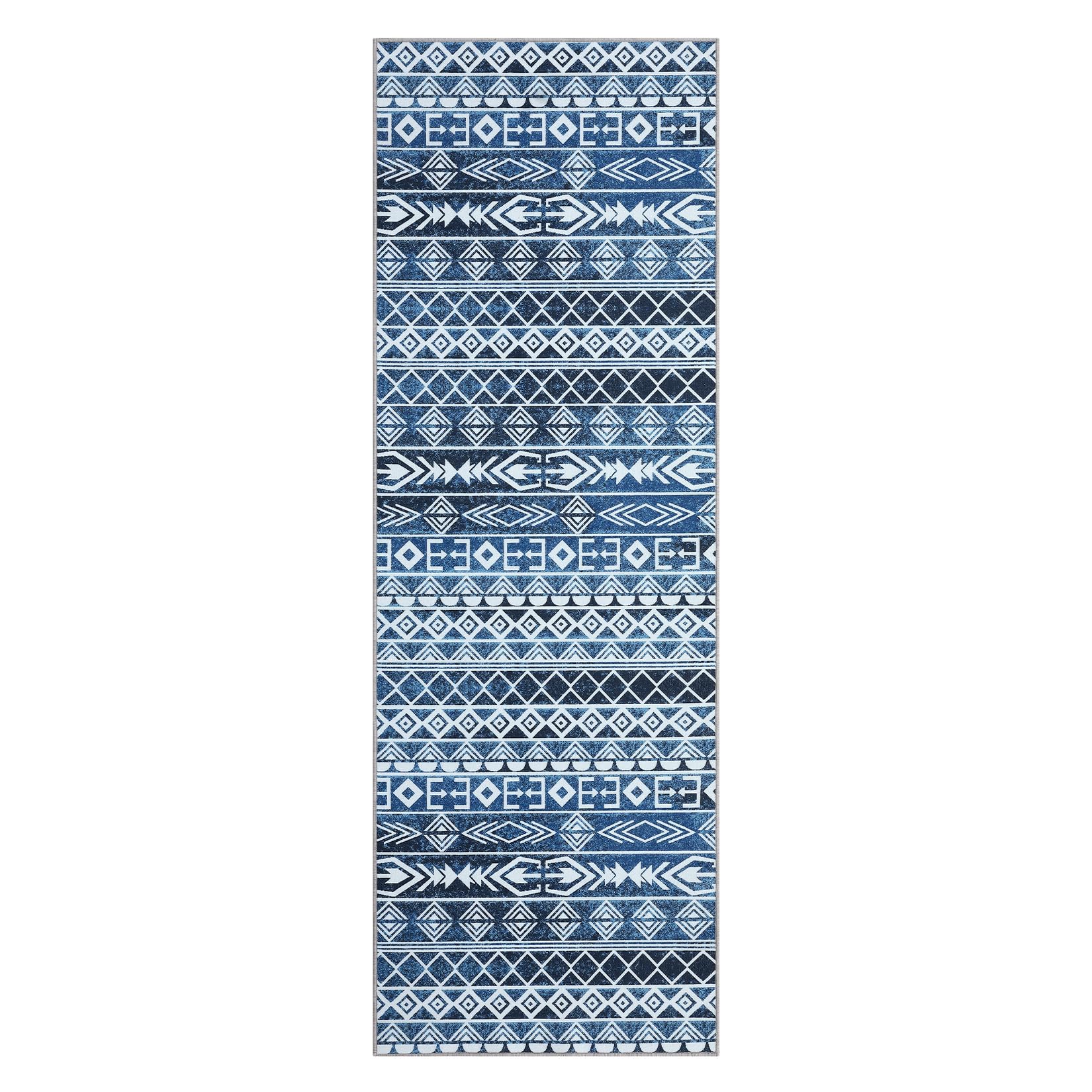 Garvee Geometric Runner Rug 2x6 - Machine Washable, Easy-Cleaning, Non-Shedding, Stain Resistant, Non-Slip, Foldable Indoor Mat for Living Room, Bedroom, Kitchen, Entryway, Bathroom, Blue
