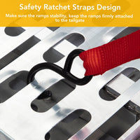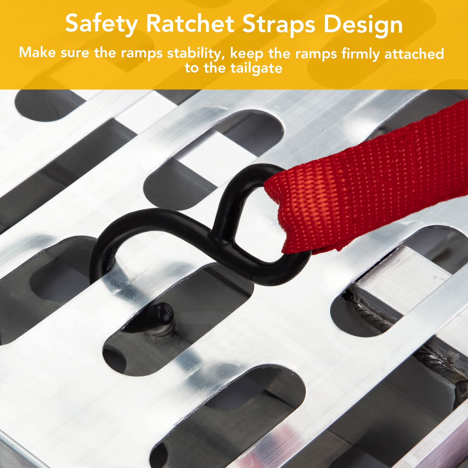 Vinyl coated hooks protect against damaging your ramp Chromate coated buckle Polyester webbing is strong and durable