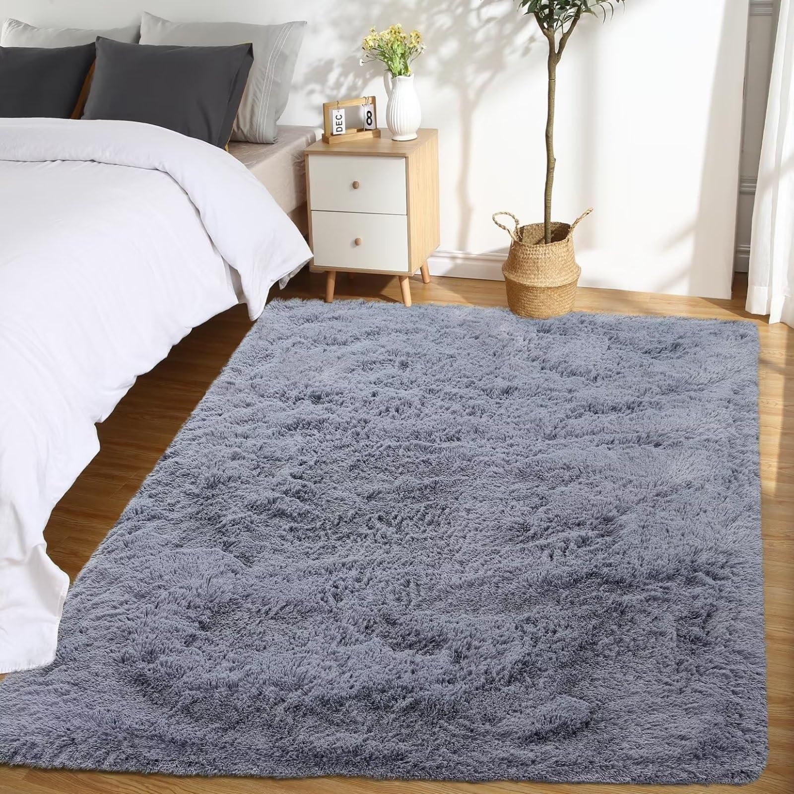 I bought this rug for my bedroom, and it’s so soft and comfortable. The fluffy texture feels amazing, and it’s held up well to daily use. Highly recommend!