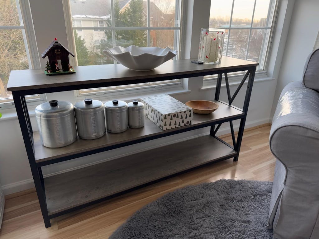 With its industrial-inspired design, spacious shelves, and sturdy construction, this console table combines style with functionality. The easy assembly process ensures you can enjoy your new furniture in no time.