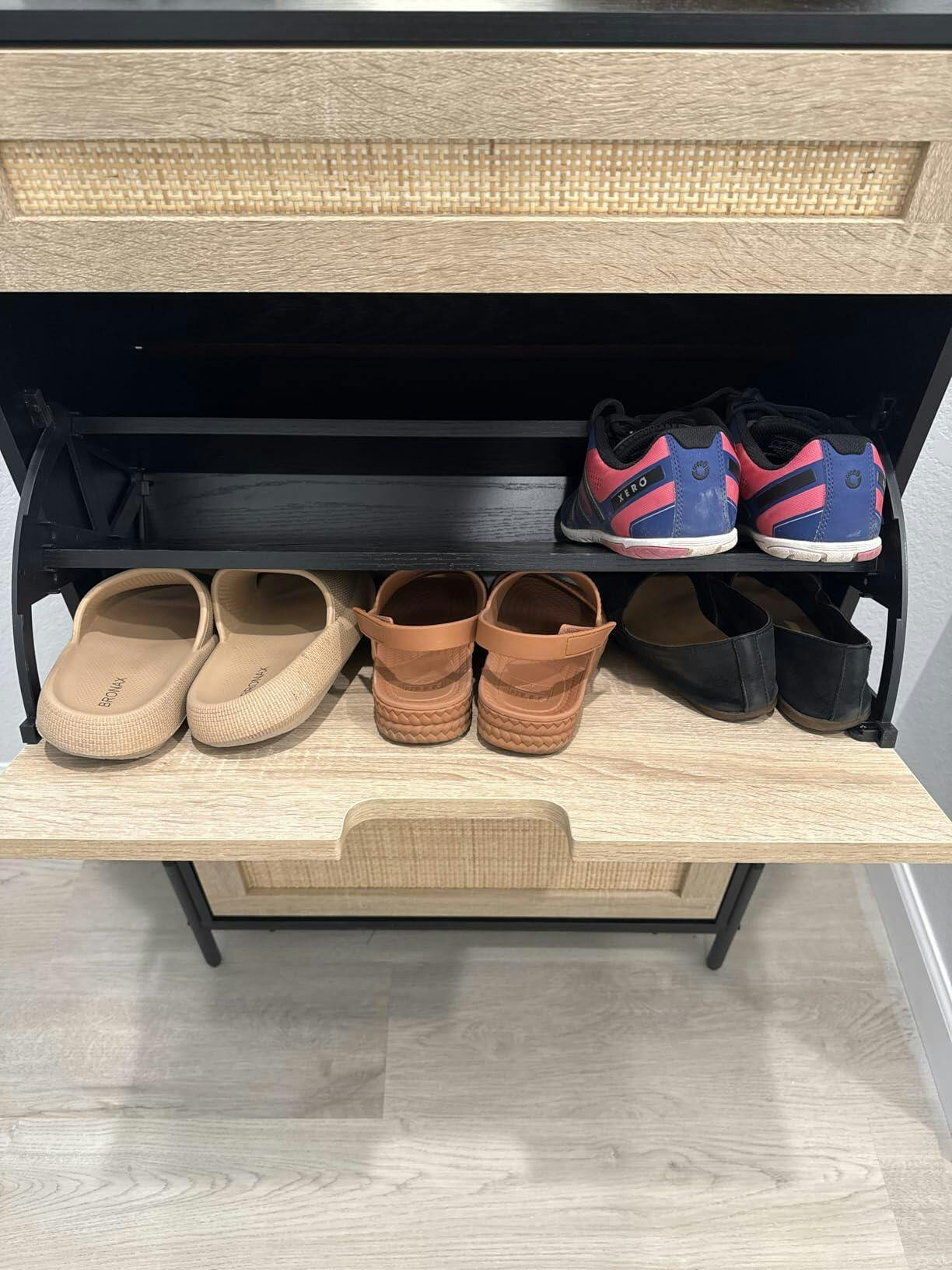 The GARVEE Natural Rattan Shoe Rack Storage Cabinet isn't just for shoes - it's a multi-functional storage solution. With ample space for footwear, accessories, and more, it provides an organized and inspiring environment that will keep your entryway tidy and inviting.