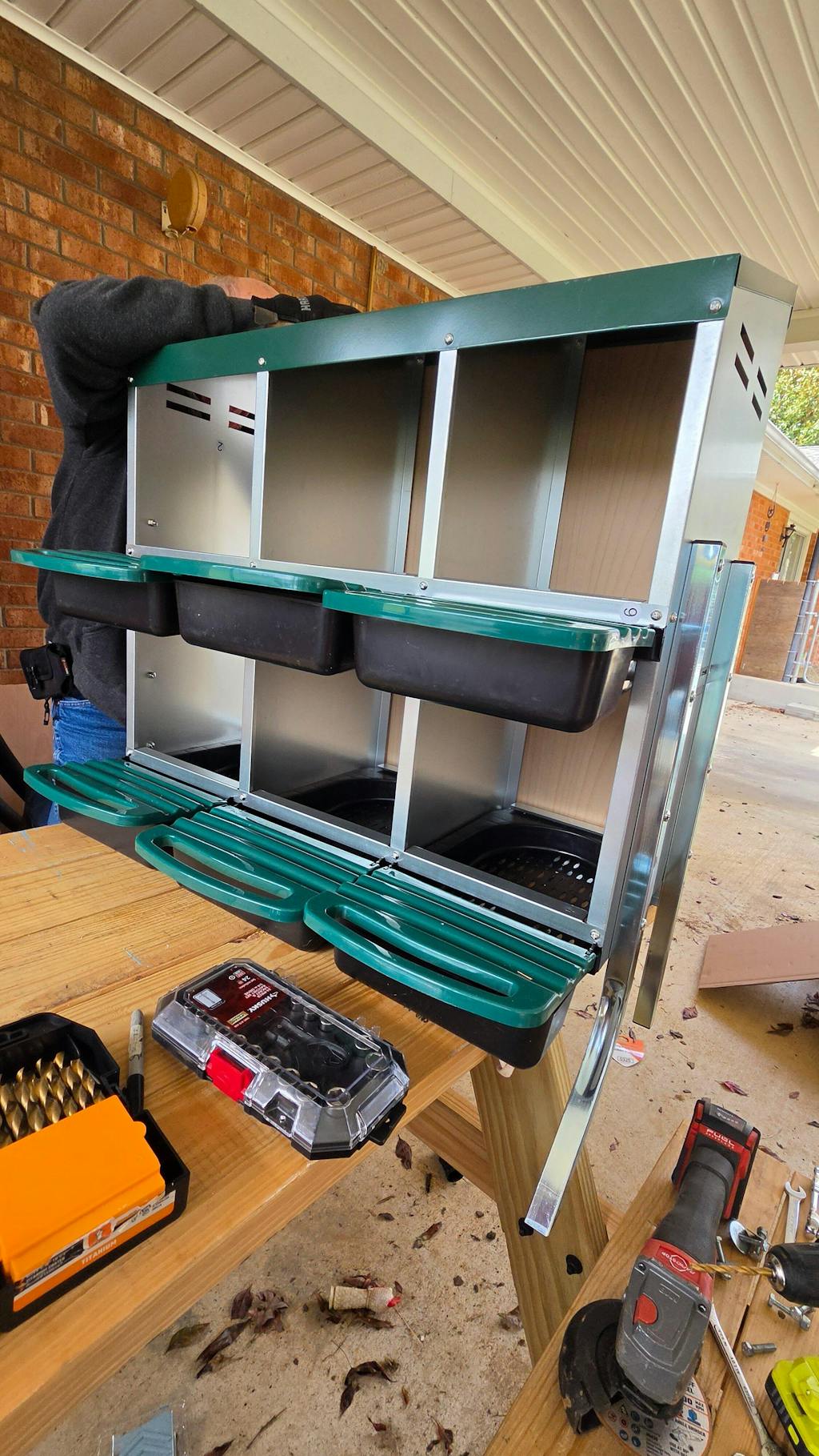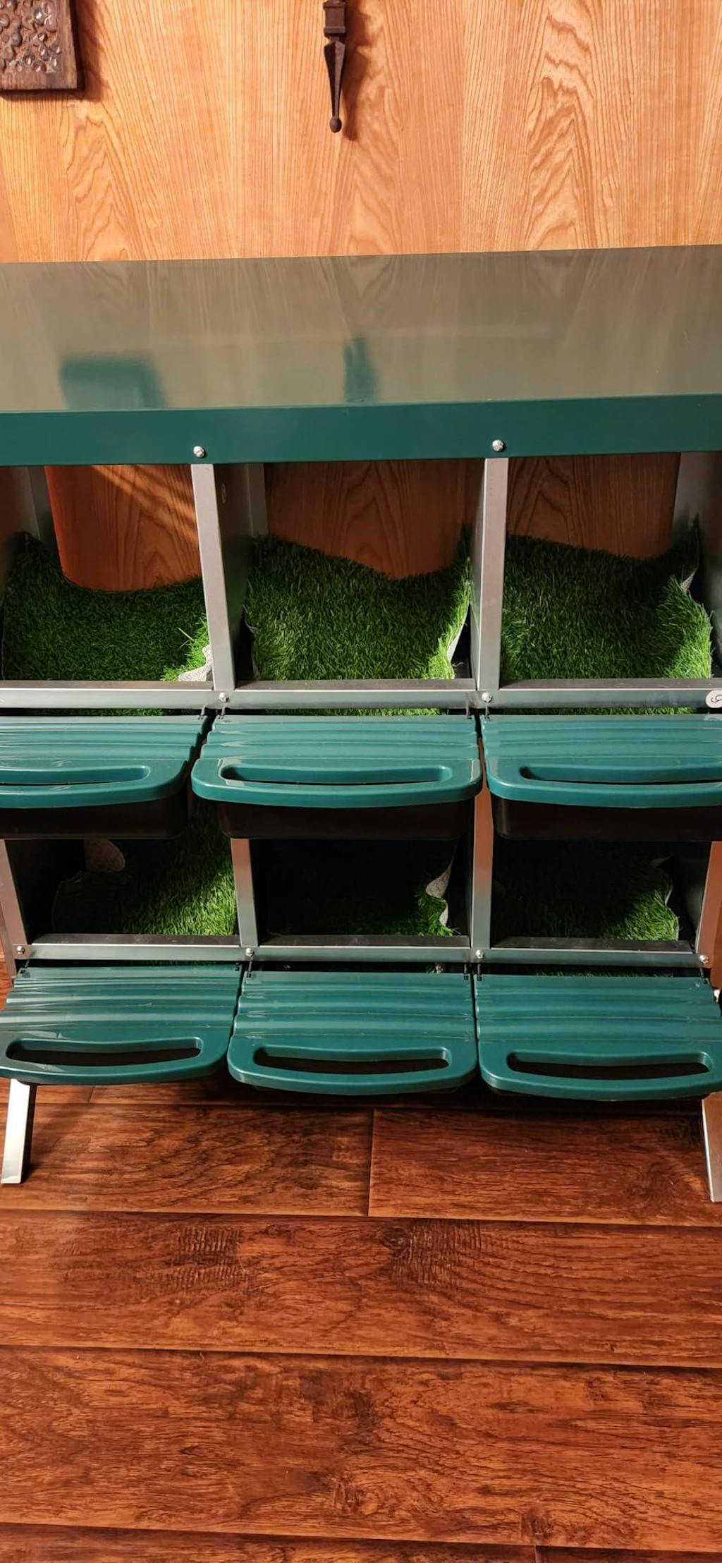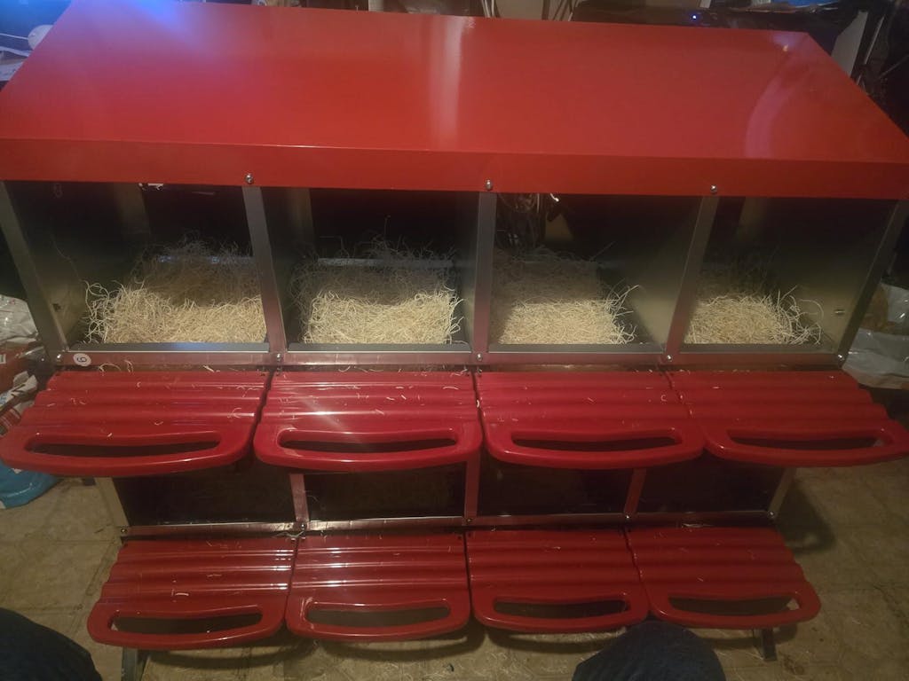 - Egg Protection: The nesting box has a slight tilt design that encourages eggs to roll forward under a secure lid, keeping them safe until collection. We recommend placing padding under the lid of the egg collection box for additional protection against breakage.