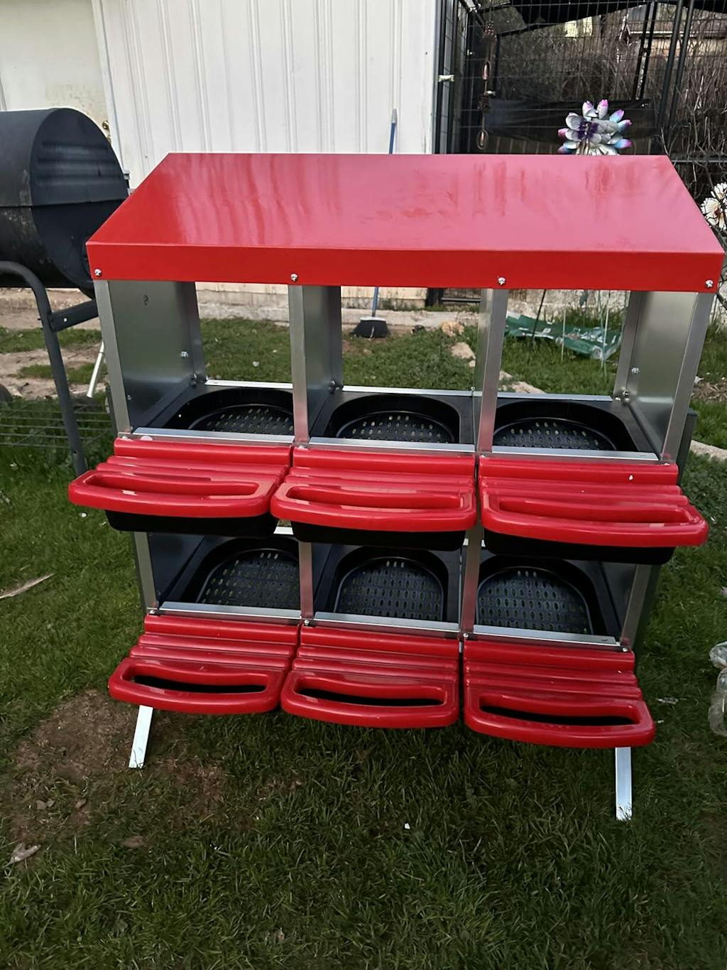 - Auto Egg Collection: Nesting Boxes has six egg-laying areas, each egg-laying area is comfortable, safe, and sheltered, so that the chickens can get a more comfortable and safe egg-laying environment, and you can get more eggs.