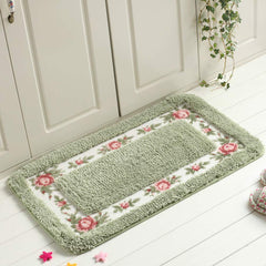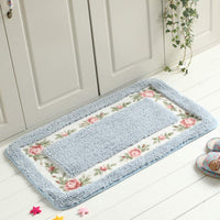 Garvee Pastoral Style Rose Pattern Non Slip Water Absorption Rectangle Carpet Floor Mat - Blue