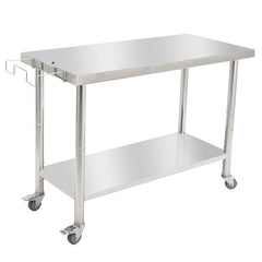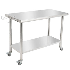 Garvee 48"L x 24"W x 35"H Nsf Commercial Stainless Steel Prep Table Work Table with Backsplash, Adjustable Undershelf, 5 Hooks and Wheels, Heavy Duty Workbench Workstation for Home Kitchen Restaurant Outd