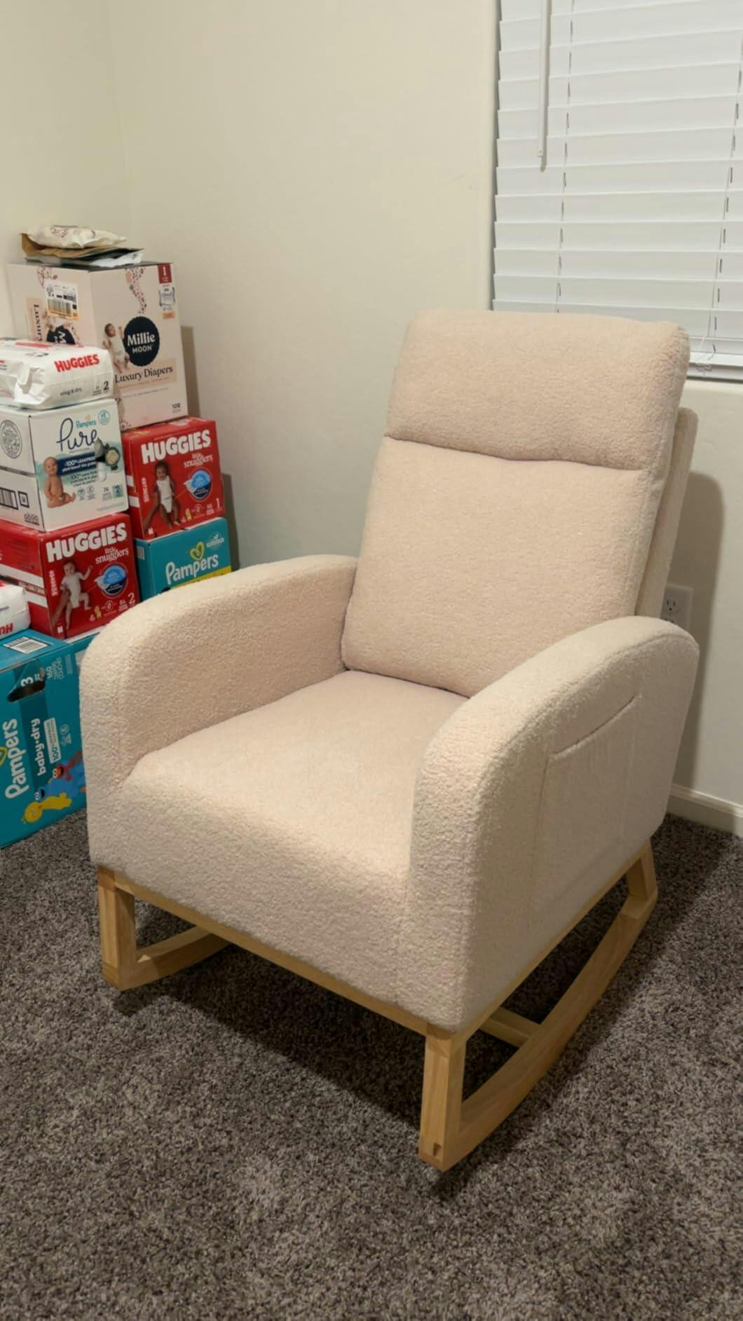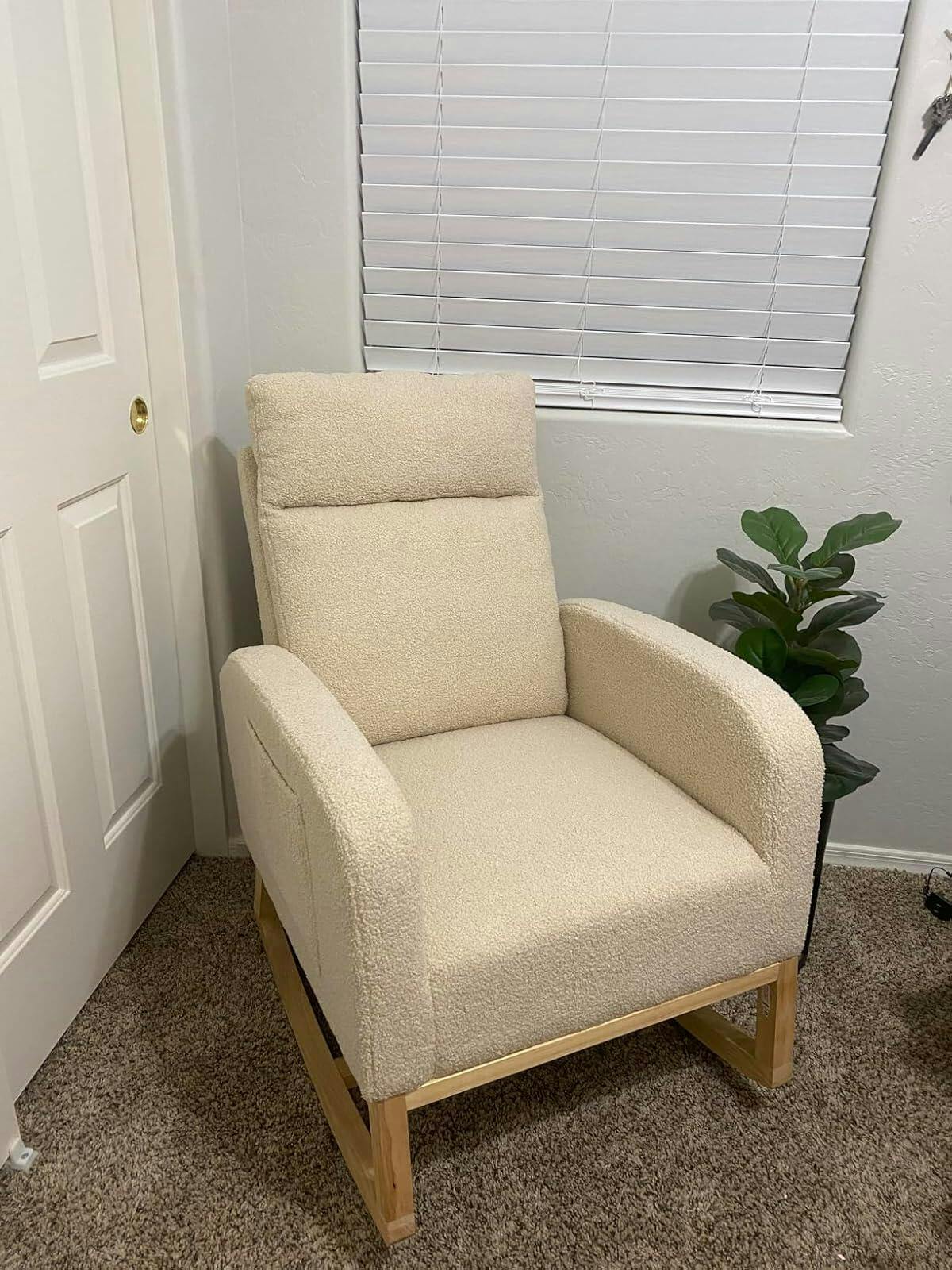 - Practical Side Pocket: The side pocket on the glider chair can store a book, a phone within easy reach while you sit. This modern rocking chair could be a stylish and functional piece of furniture that adds both convenience and beauty to your home.