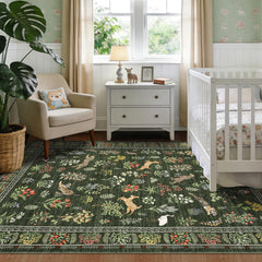 Garvee Animal Print Green Nursery Rug 5x7 Ultra Thin Stain Resistant Non Slip Indoor Jungle Area Rug for Kids Room Bedroom