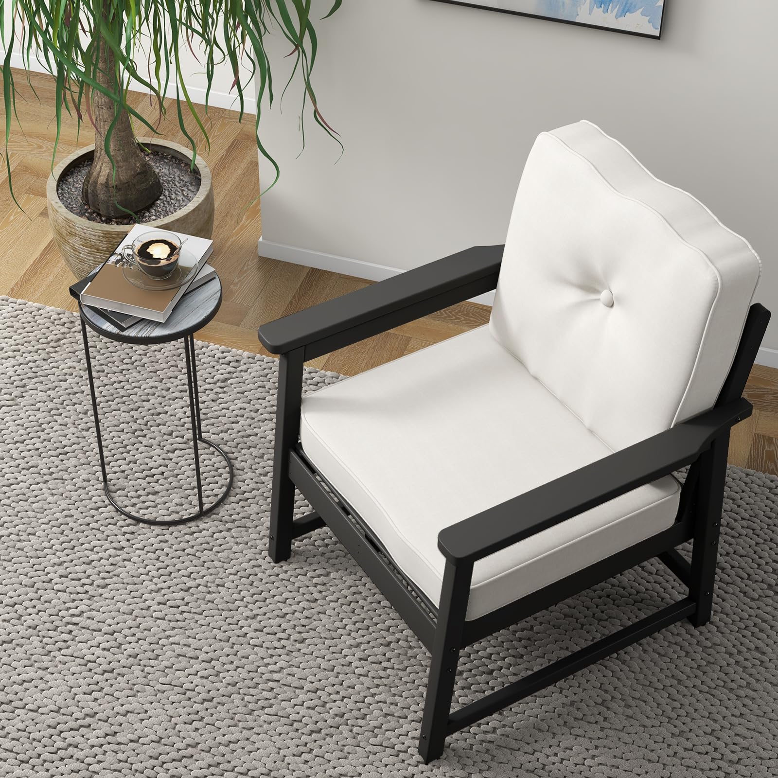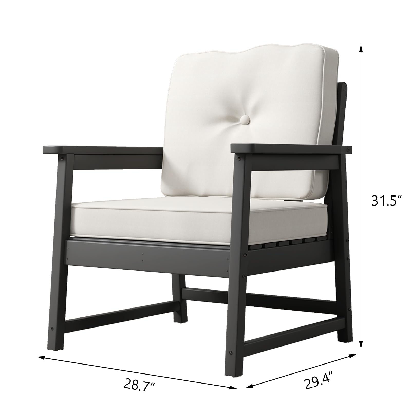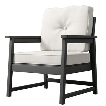 Garvee Patio Chairs HDPE Recycled Plastic Outdoor Club Chair with Thick Cushion & Stainless Steel Screws, Black, for Deck, Yard, Garden, Porch
