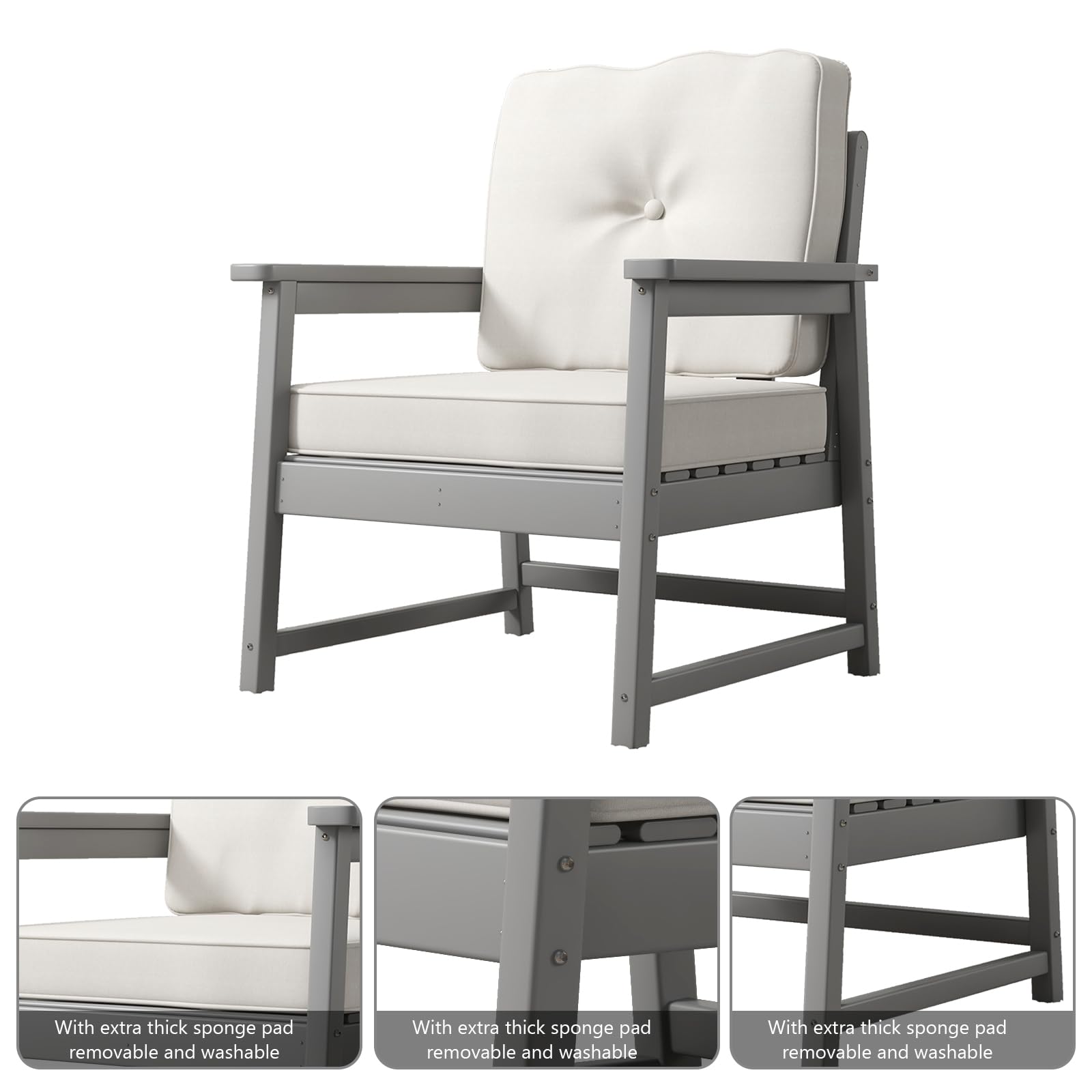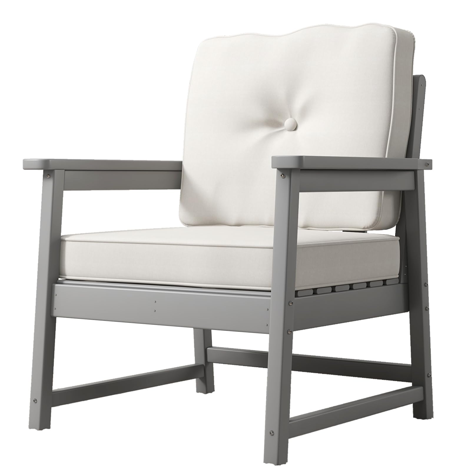 Garvee Outdoor Club Chair HDPE Recycled Plastic with Thick Cushion & Stainless Steel Screws for Deck, Yard, Garden, Porch, Grey