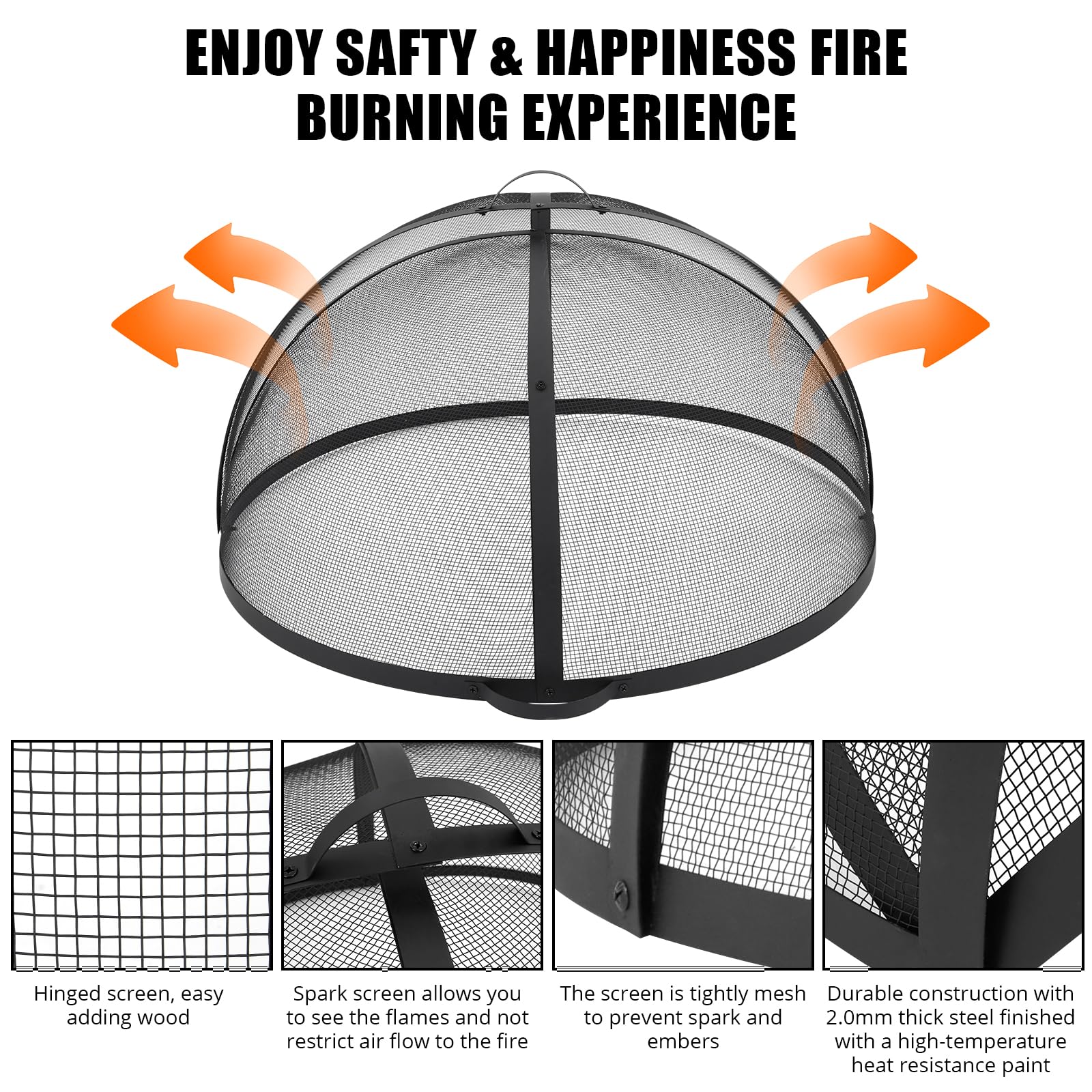 - - **Robust Spark Protection**: The Asypets Outdoor Fire Pit Spark Screen Cover, with its 30-inch round heavy-duty stainless steel build, effectively contains embers and sparks. The sturdy hinges allow for safe access to the fire without needing to remove the cover entirely, ensuring a secure and enjoyable outdoor experience.