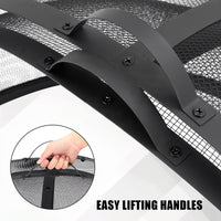 - - **User-Friendly Handling**: Equipped with ergonomic handles, this fire pit cover enables easy lifting and positioning. The convenient foldable design makes storage and transport simple, while the high-quality stainless steel ensures an anti-corrosion finish for lasting functionality.