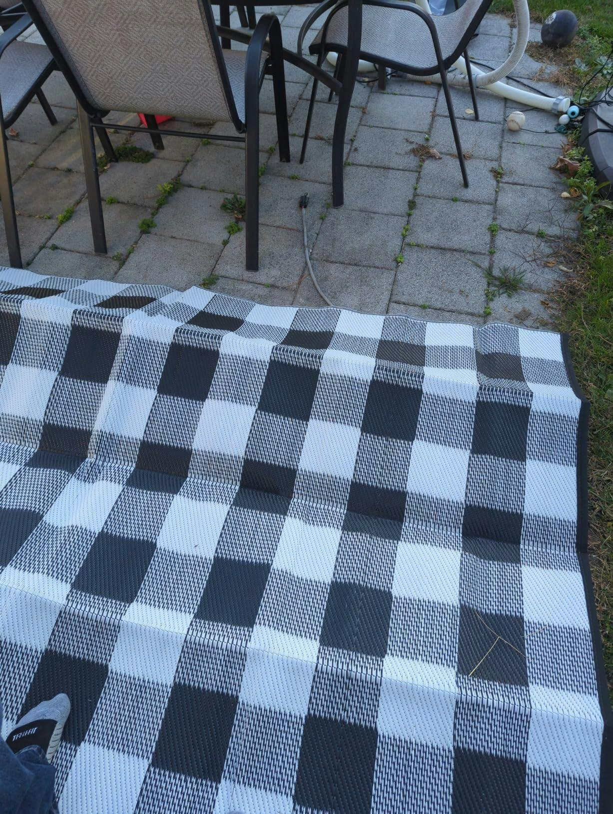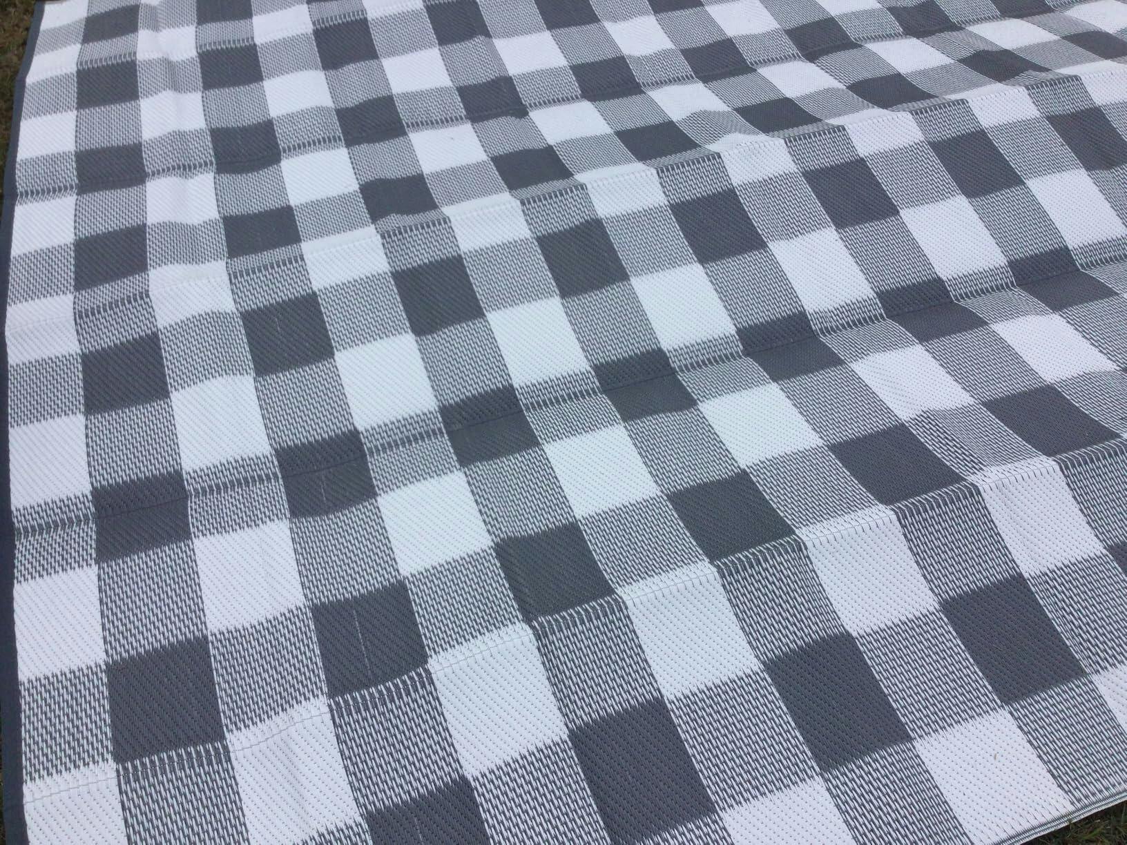 Garvee Outdoor Black & White 8x10 Rug, Outdoor Plastic Straw Rug for Camping, RV Mat Outside, Outdoor Carpet for Porch, Deck, Backyard, Balcony, Picnic(Black/White-plaid)