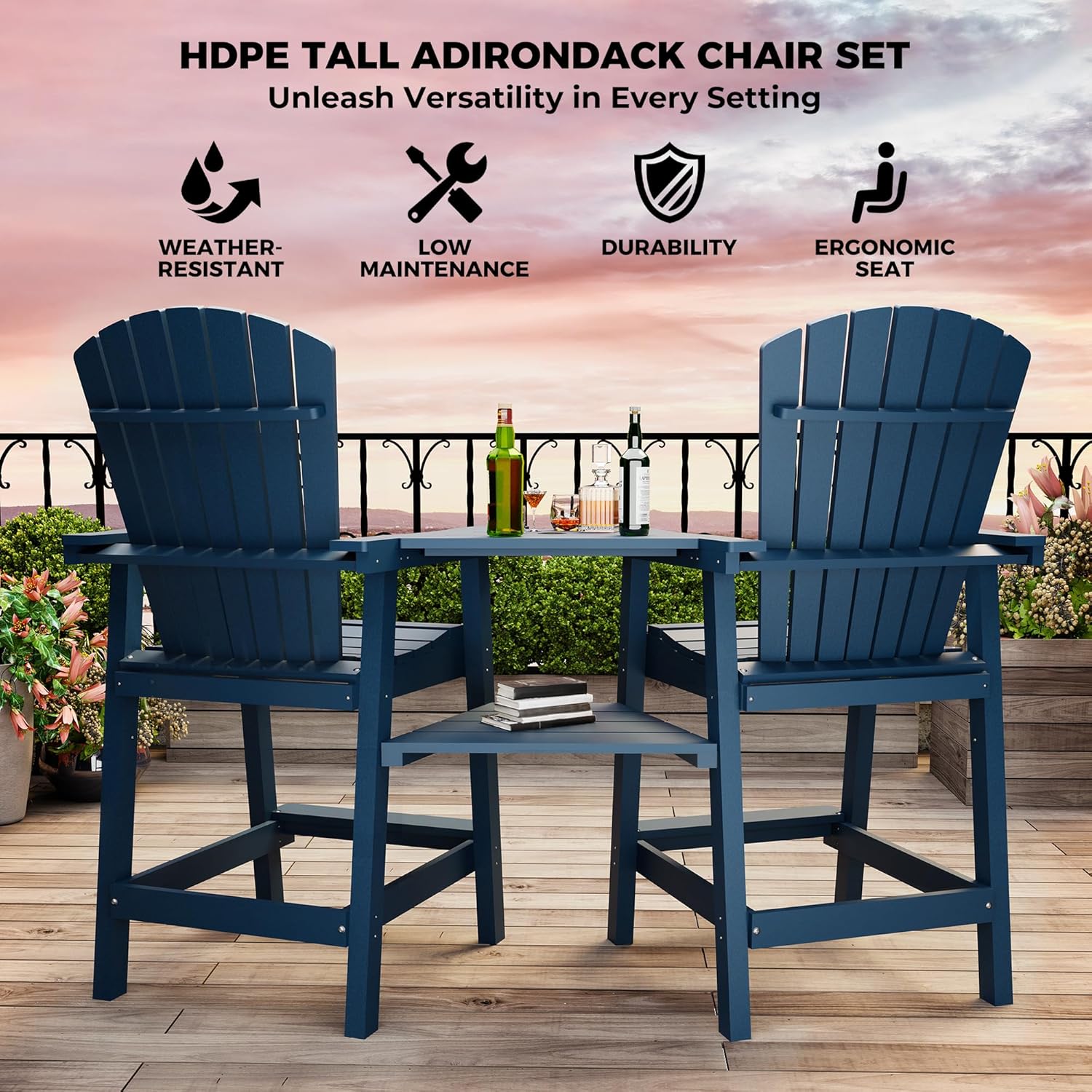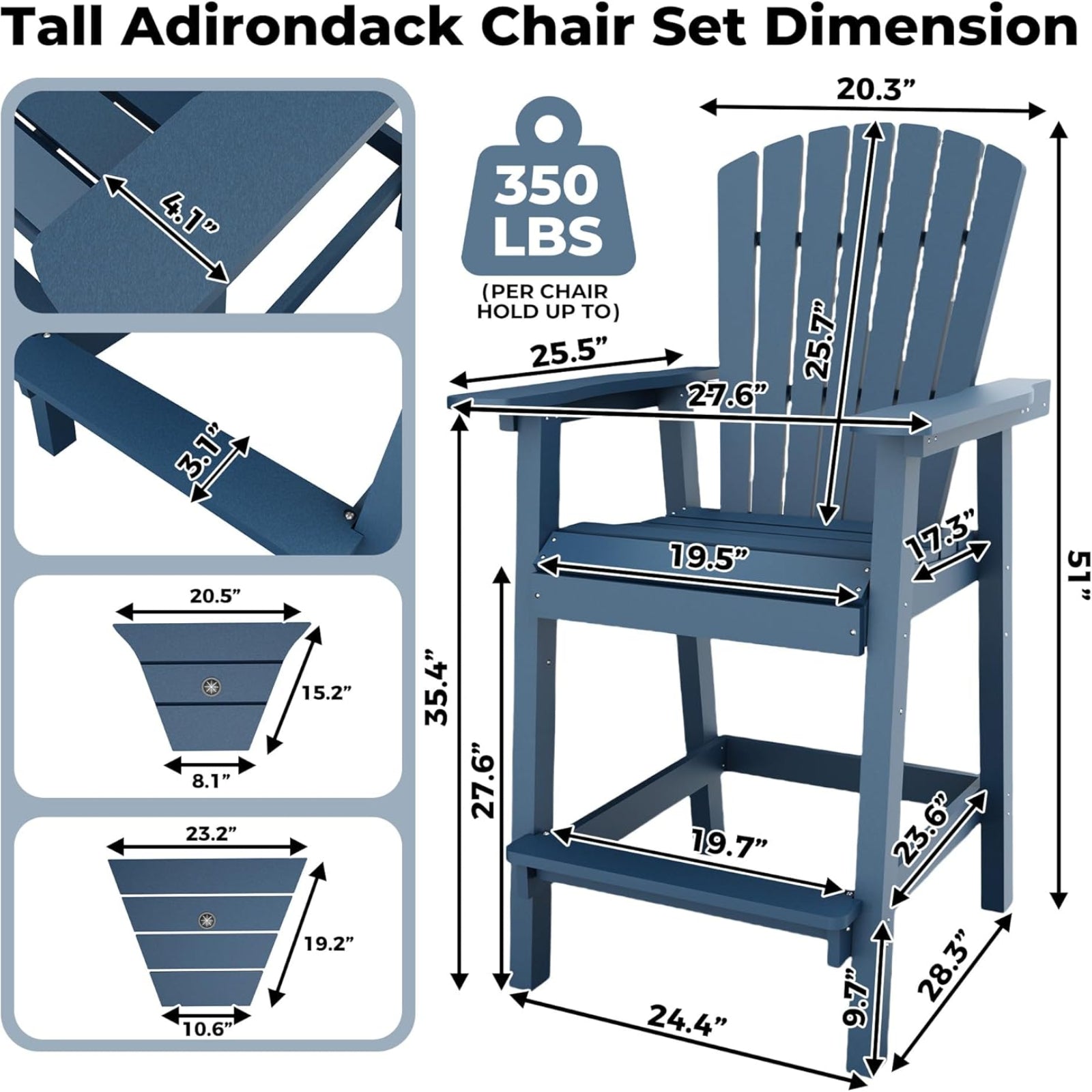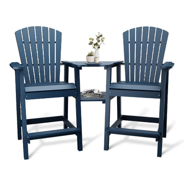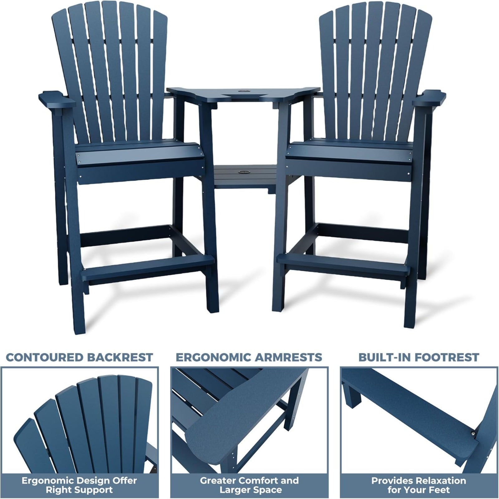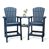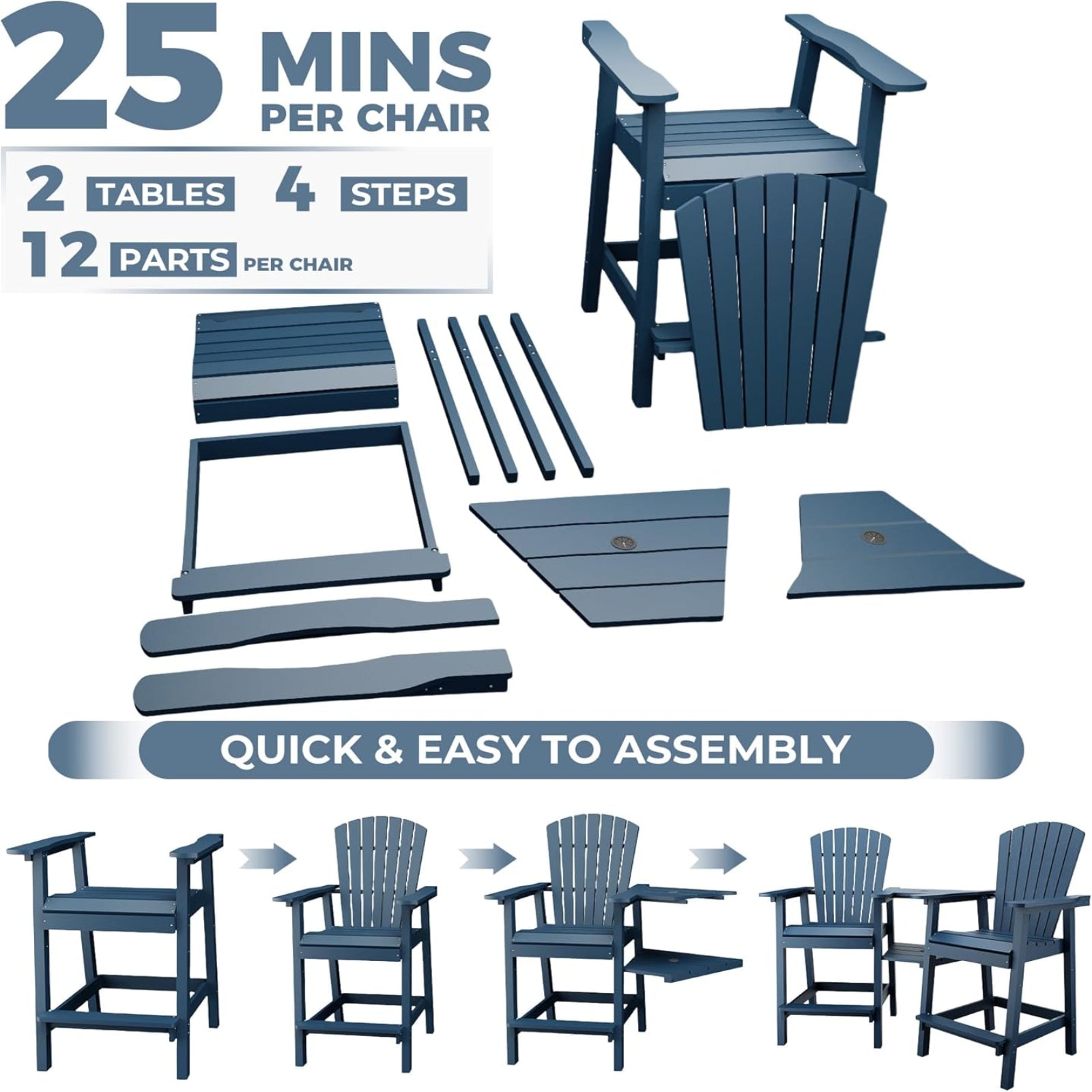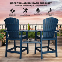 Garvee Recycled Plastic Adirondack Bar Stools (Set of 2) with Drink Tray - Outdoor Counter Height Stools for Patio, Poolside & Garden, Navy Blue