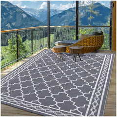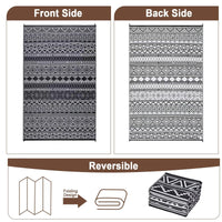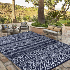 Garvee Outdoor Navy Blue & White 9x18 Reversible Rug, Waterproof Mat, Modern Bohemian Style, PP Plastic, Weatherproof, Easy to Clean, Black&Navy, for Camping, Patio, RV