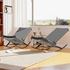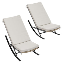 Garvee Outdoor Rocking Chair Set of 2 with Cushions, PE Rattan, Weather-Resistant Steel Frame, Removable Cotton Pads, Grey, Patio & Garden Lounge