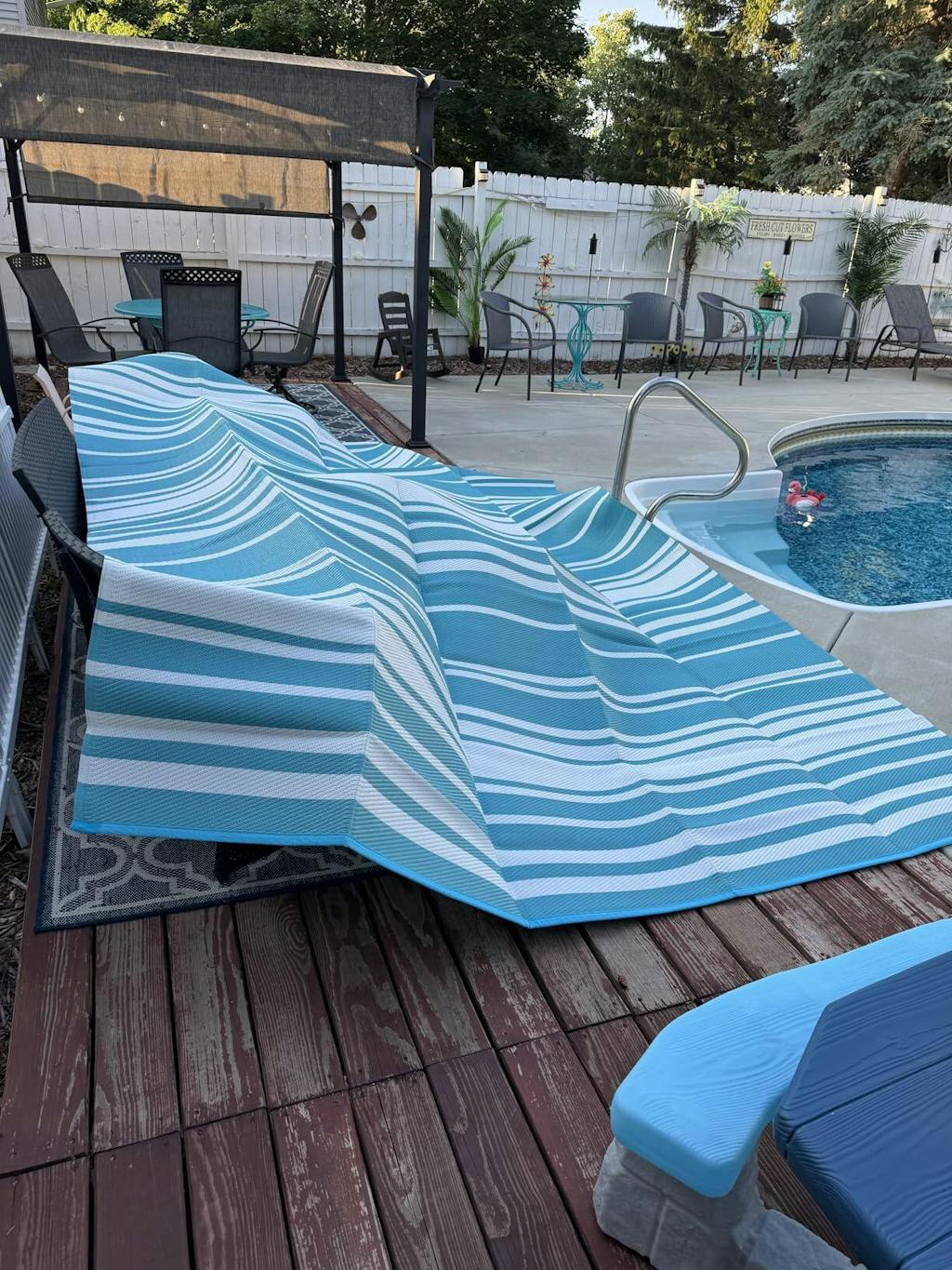 - 【UV-Resistant & Fade-Proof for Year-Round Use】Tired of rugs that fade after one summer? This outdoor patio rug uses reliable UV-resistant materials to keep colors vibrant, even under blazing sun. Perfect for poolside play, backyard BBQs, and garden parties—it stays bright and inviting year after year, no replacements needed!