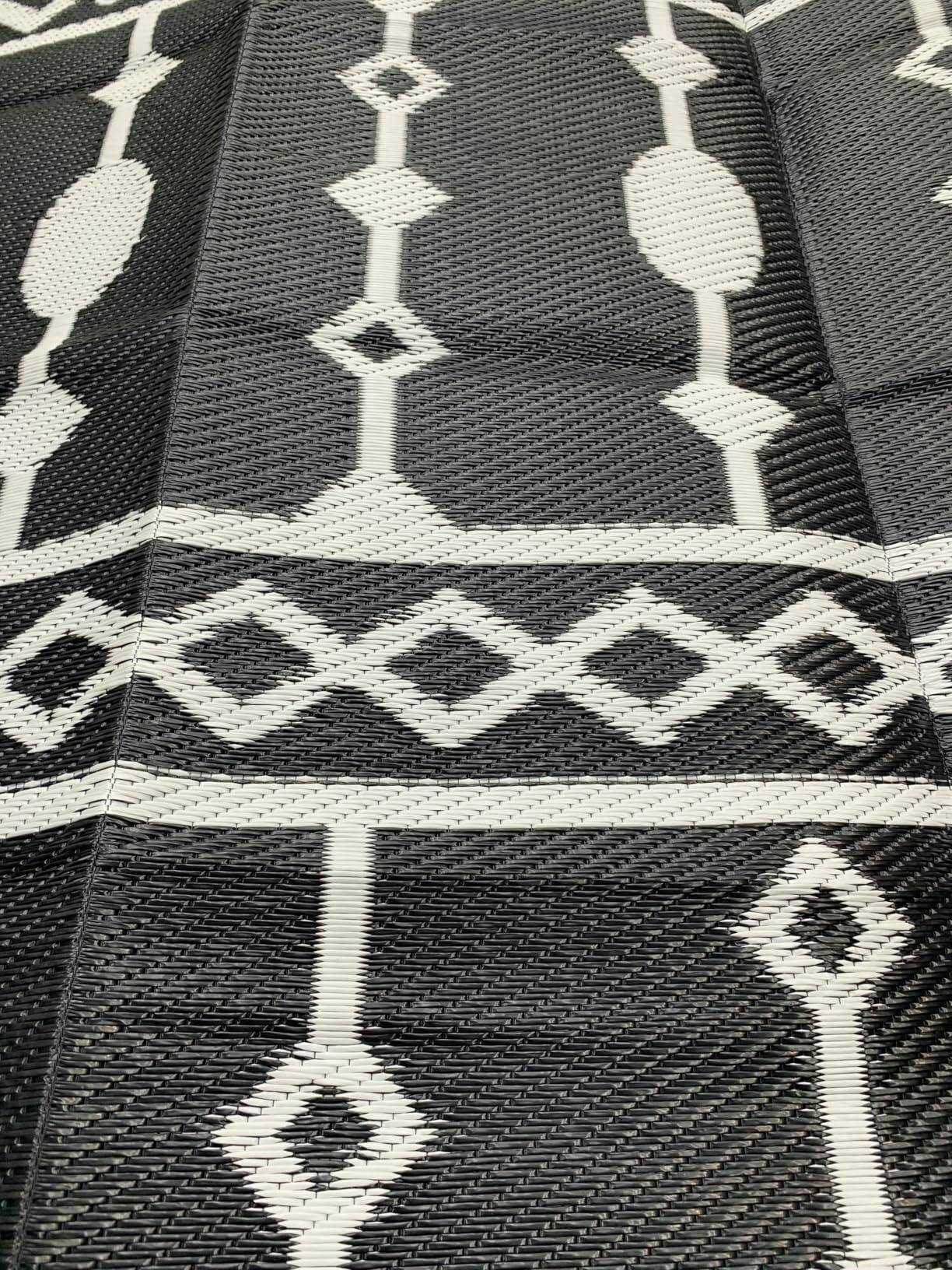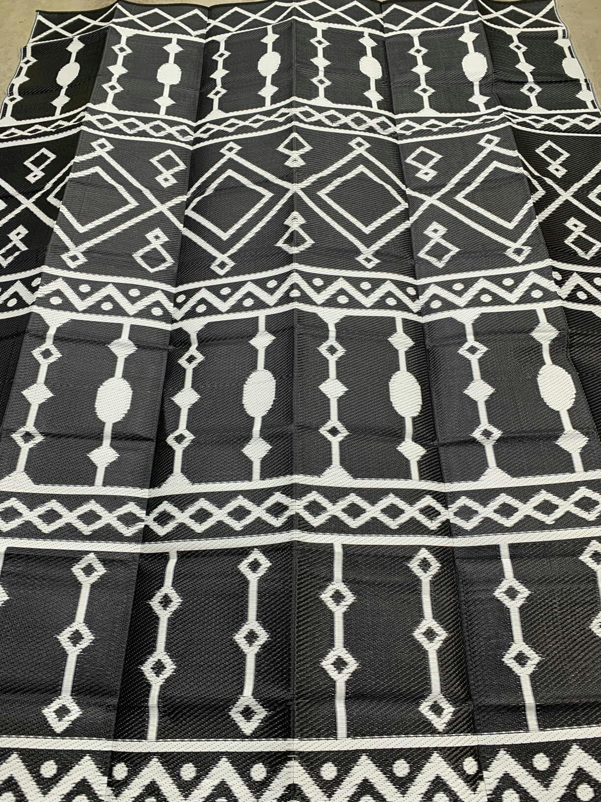Garvee Outdoor Black & Brown 9x12 Rug Waterproof Reversible Plastic Straw Rug with Anti-UV Coating, Durable Reinforced Edges, Lightweight Foldable Design for Camping, Patio, Backyard