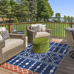 - [Upgraded Waterproof Outdoor Rug]: Using innovative weaving technology and high-quality waterproof material, it can perfectly adapt to various outdoor environments whether it is used on one side or both sides, effectively resisting rain and moisture, keeping the ground dry and comfortable