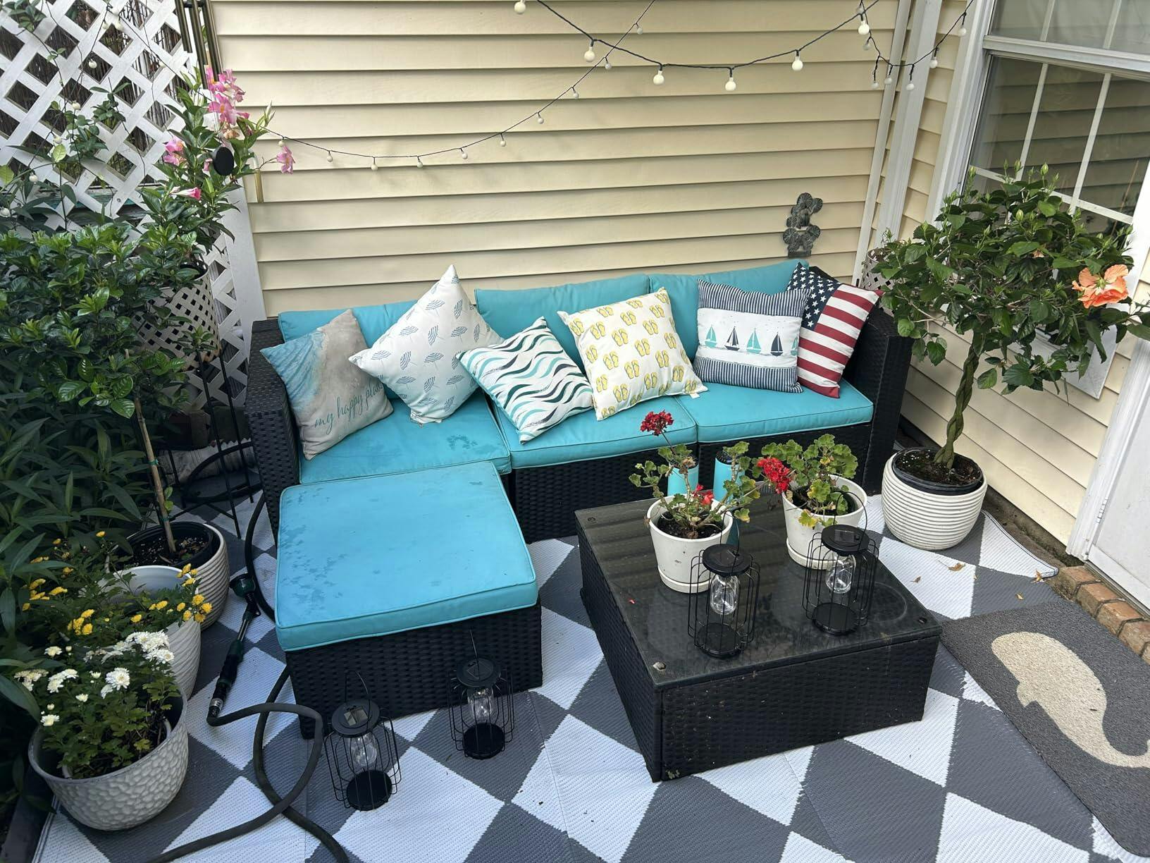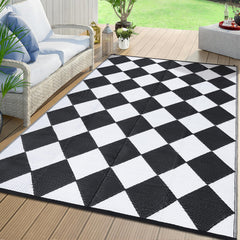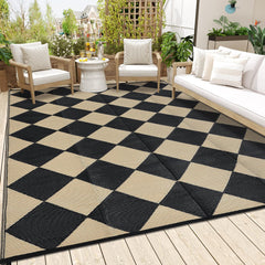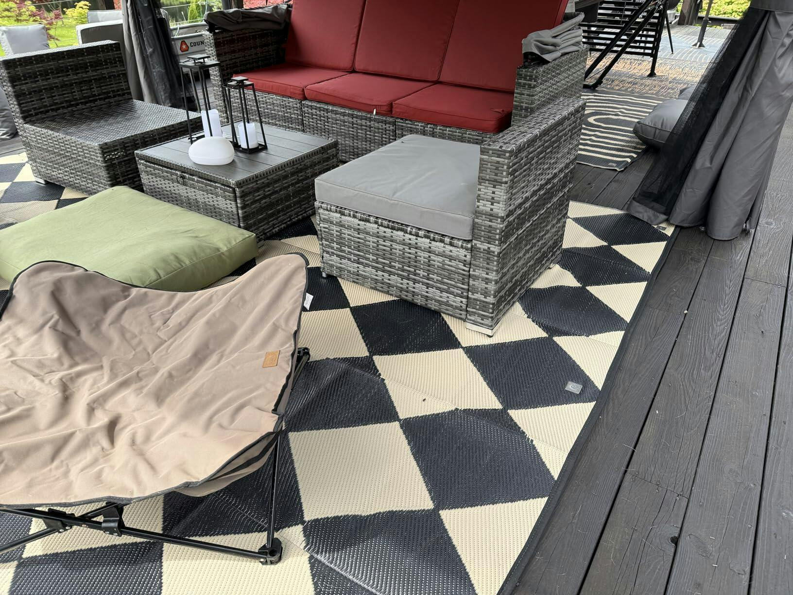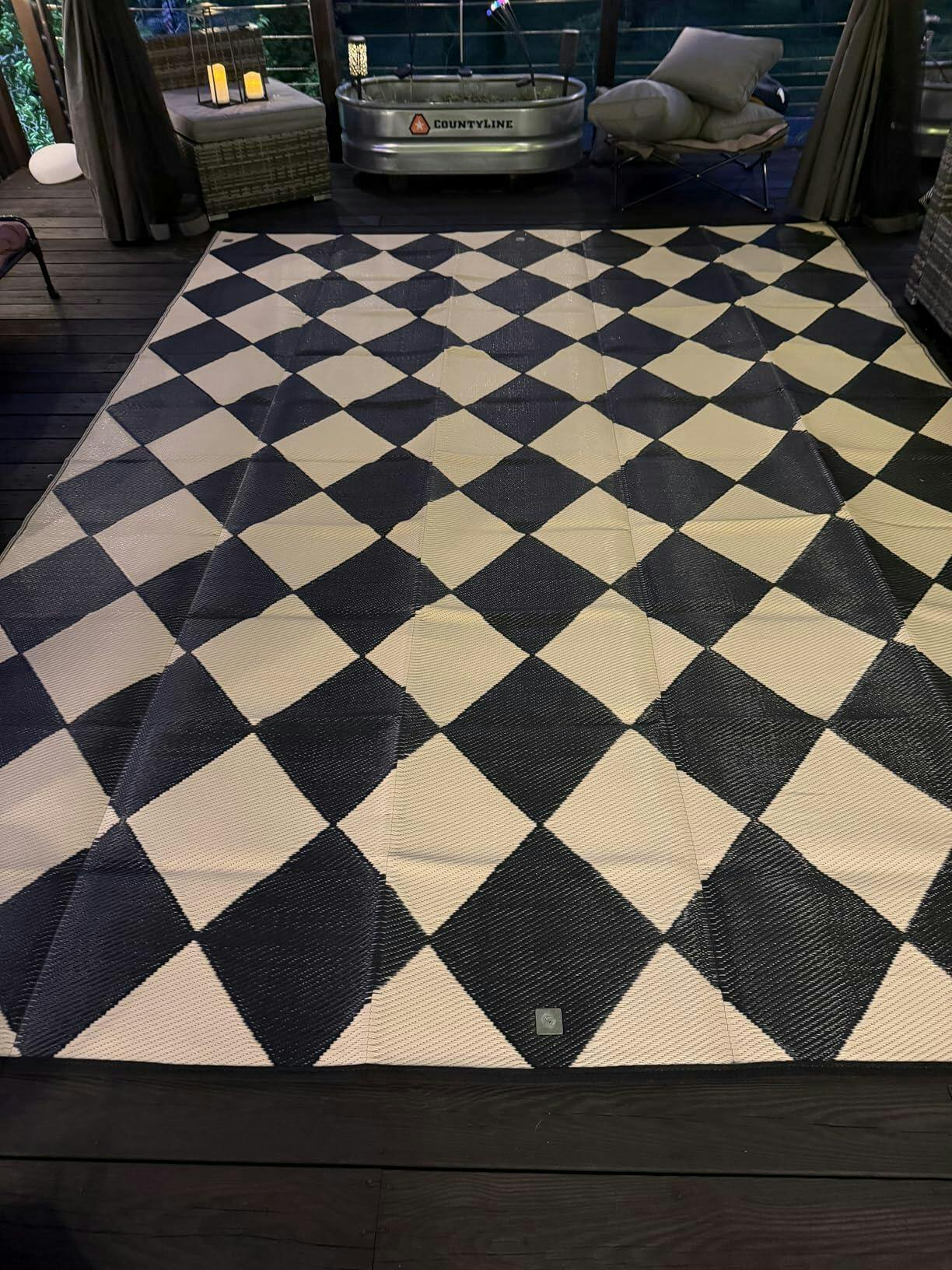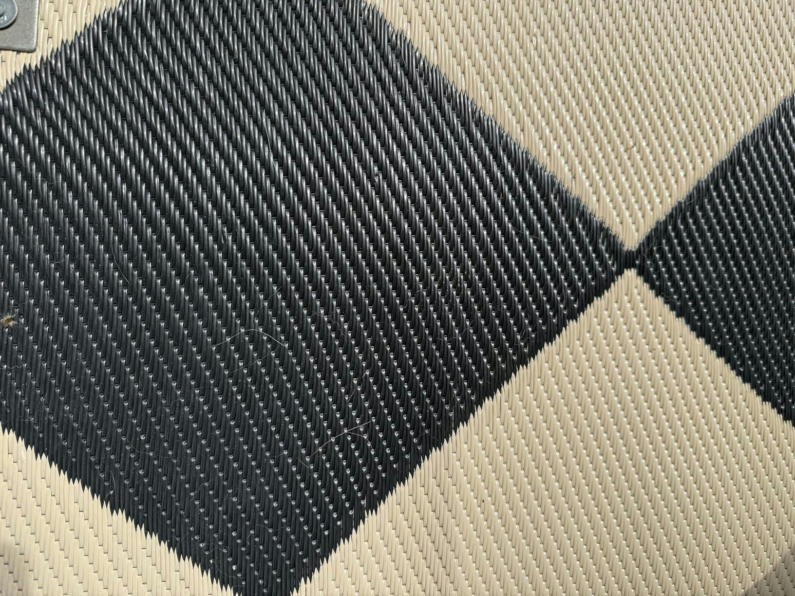 Garvee Outdoor Navy & White 9x18 Rug Waterproof Reversible Plastic Straw Rug with 4 Stakes & Portable Bag Boho Patio Rugs Carpet RV Mat Outside for Patio Camp Balcony Deck Picnic